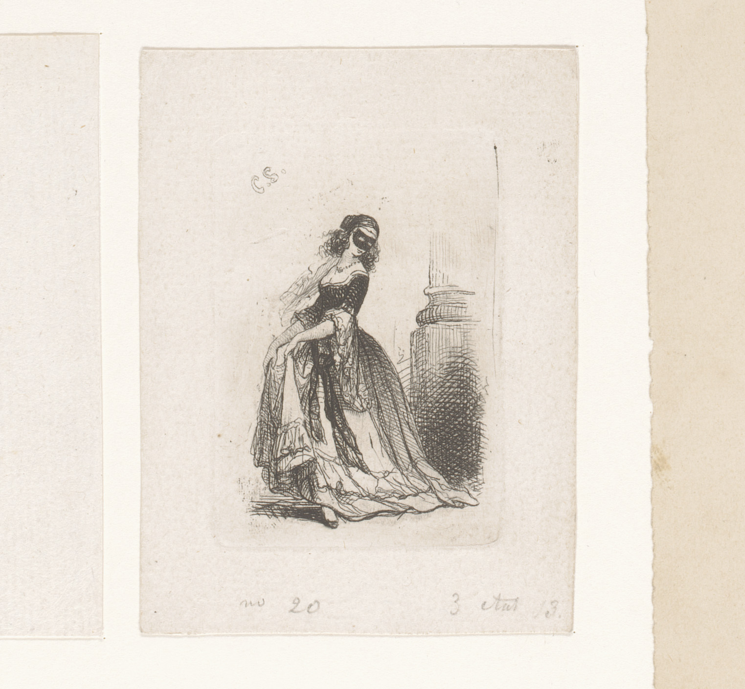 Gemaskerde vrouw in baljurk