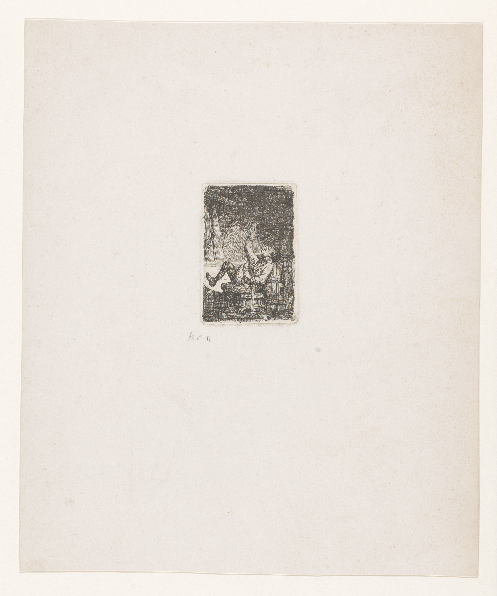 Man met kruik heft zijn glas