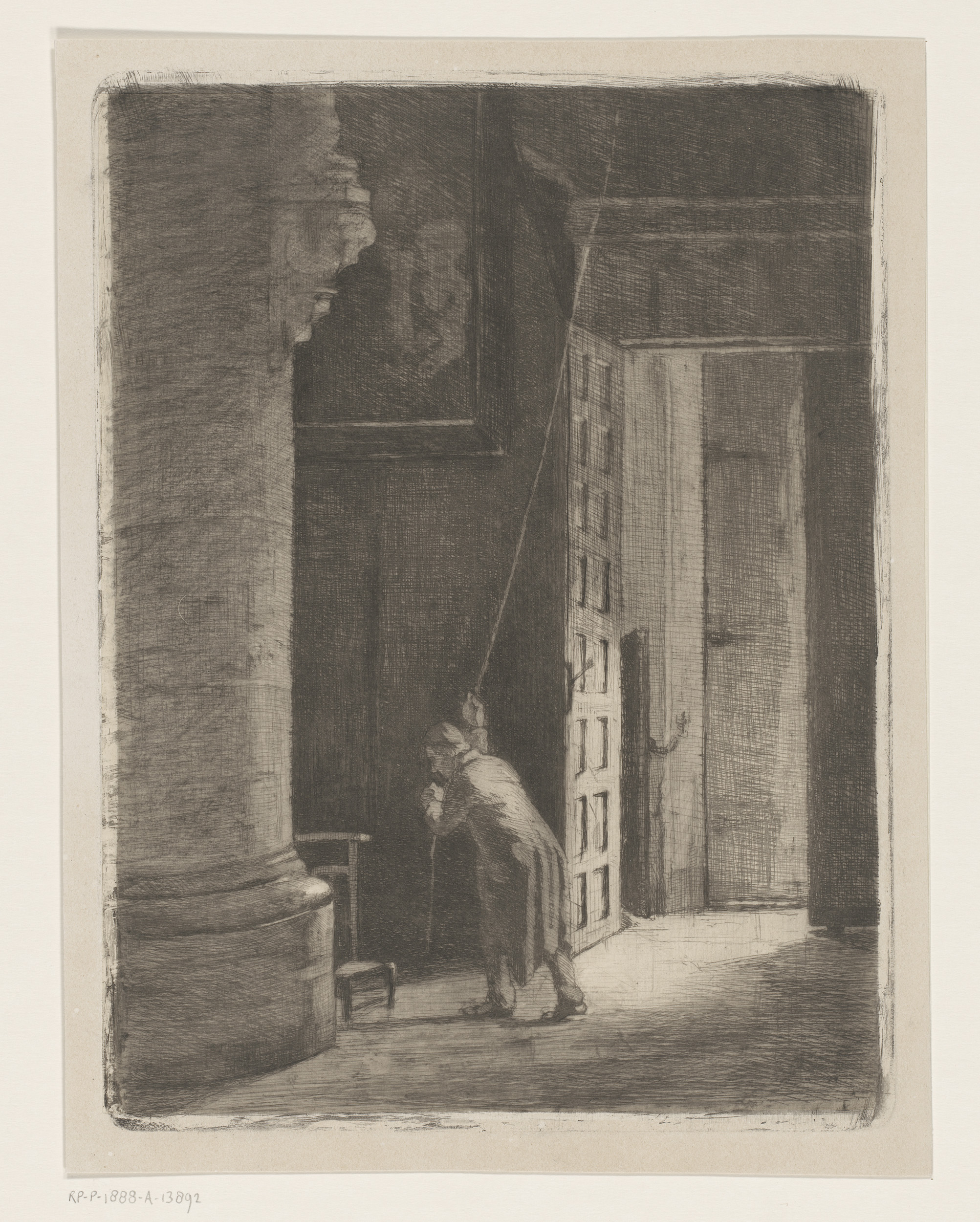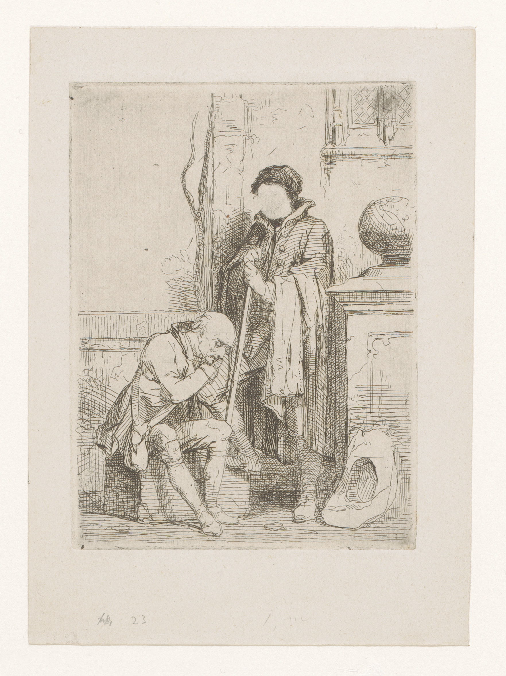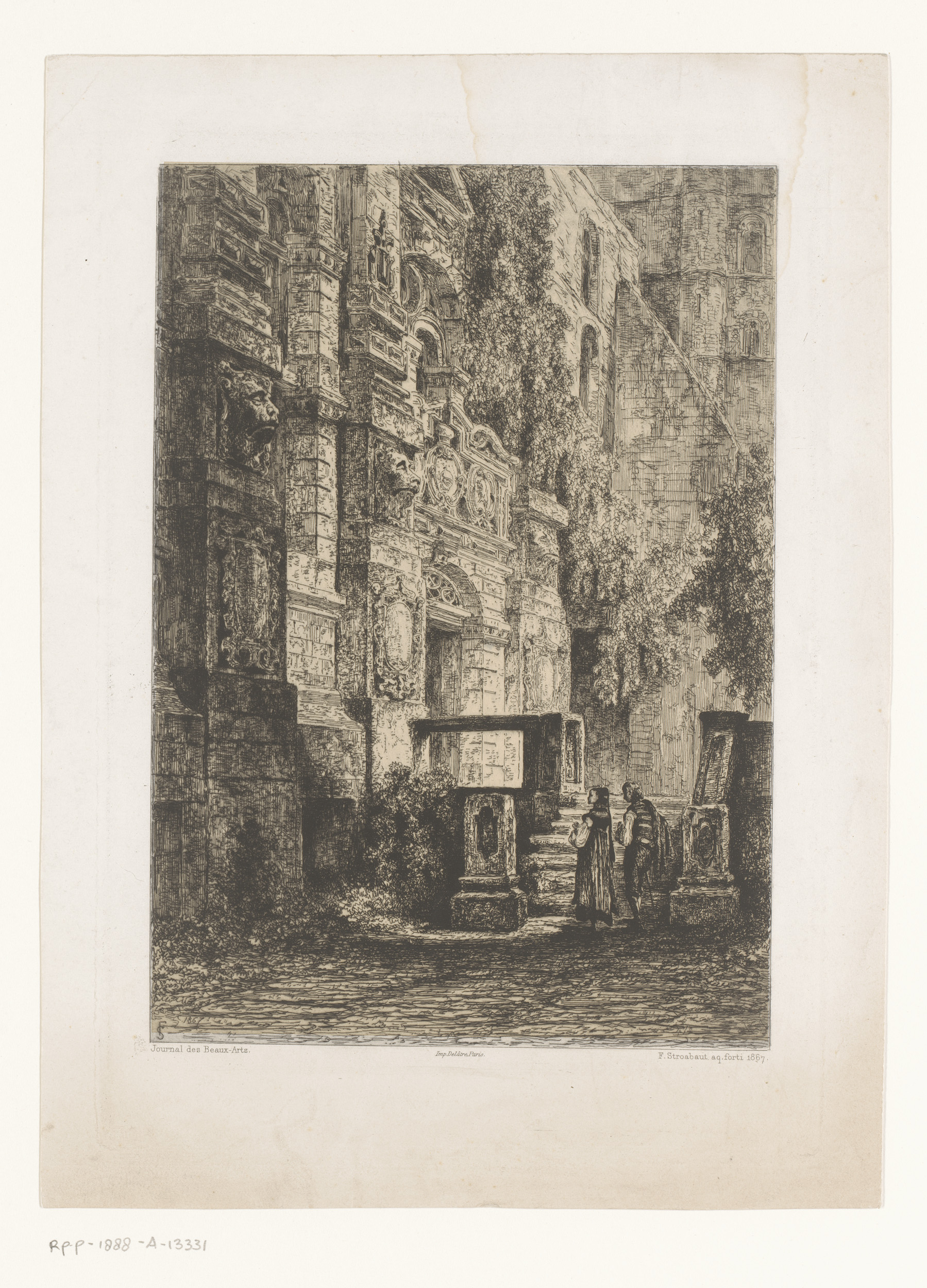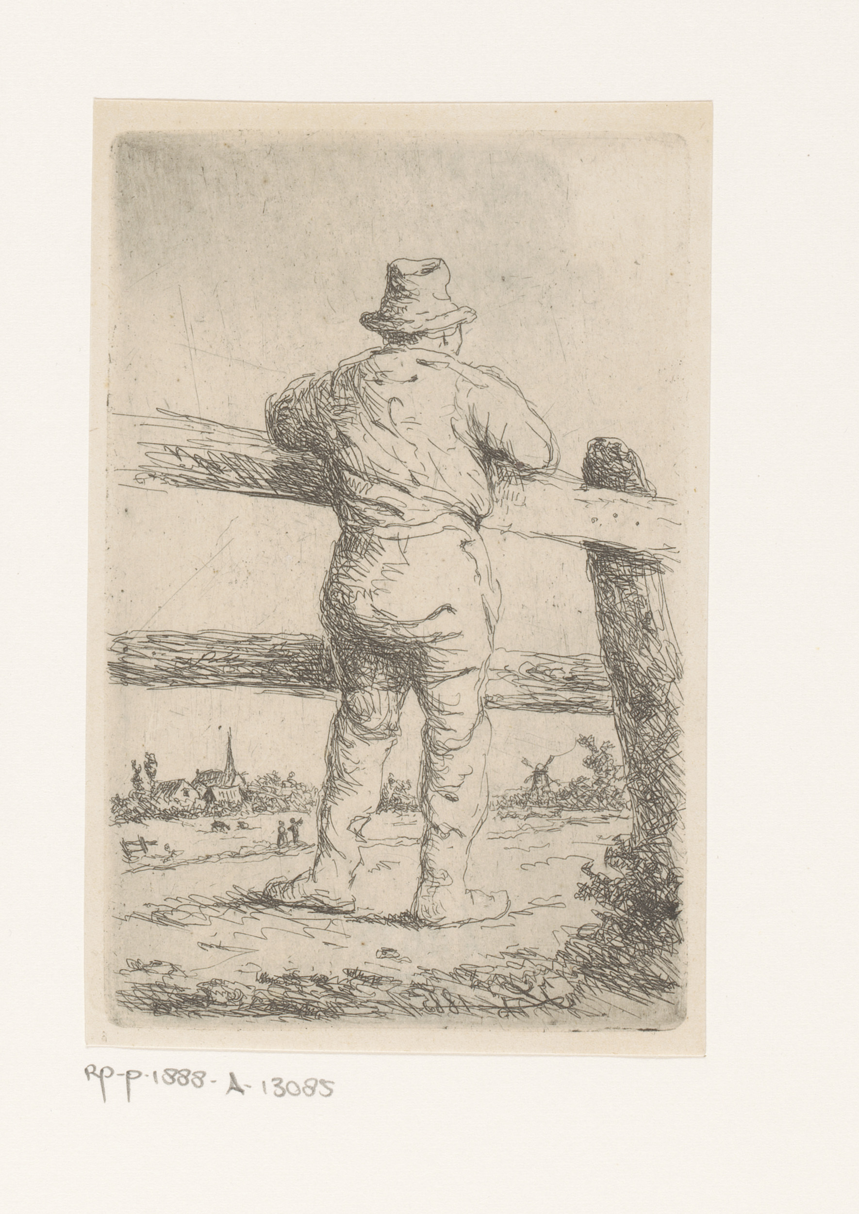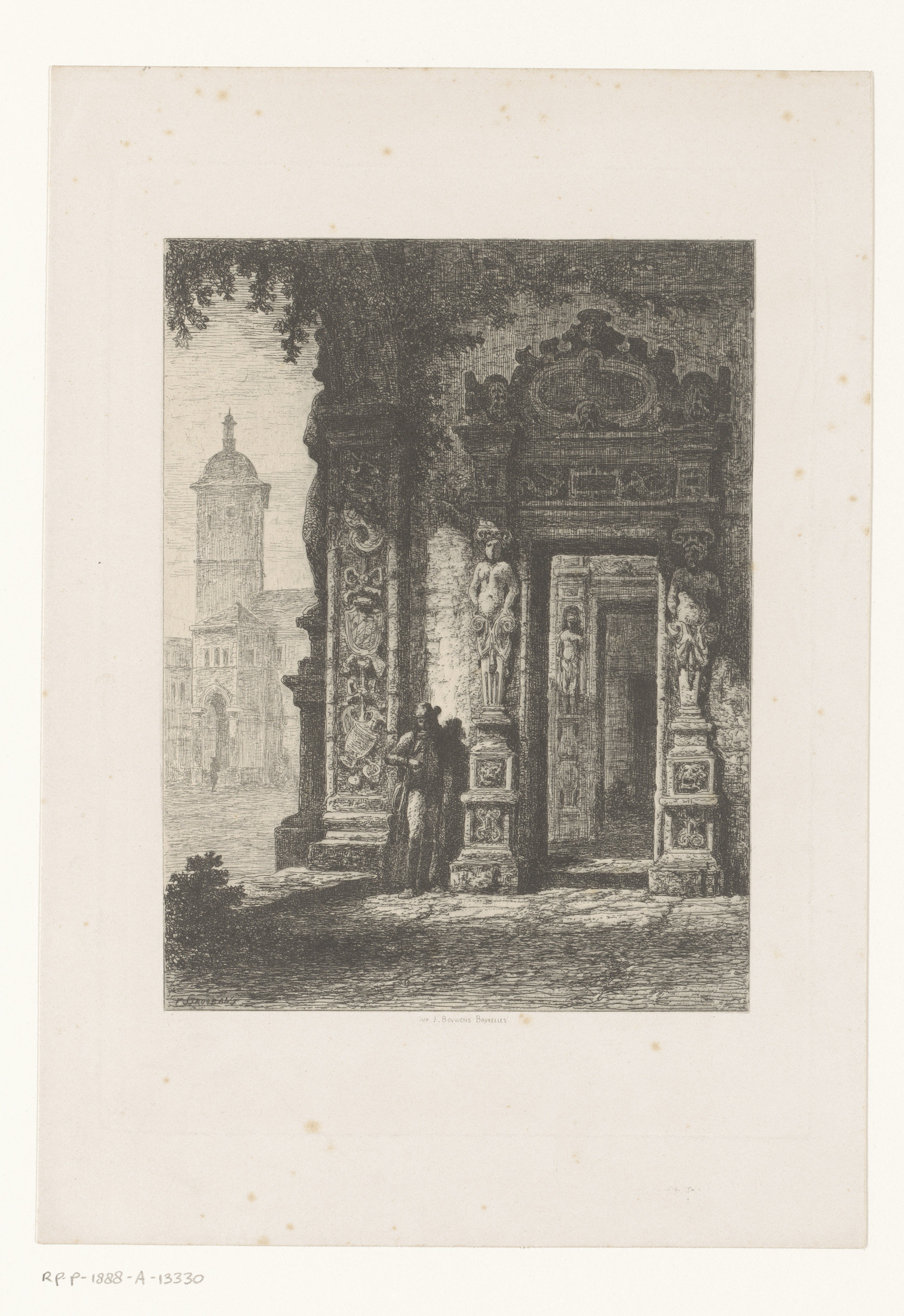 Man met hoed bij een monumentale poort, links op de ...
