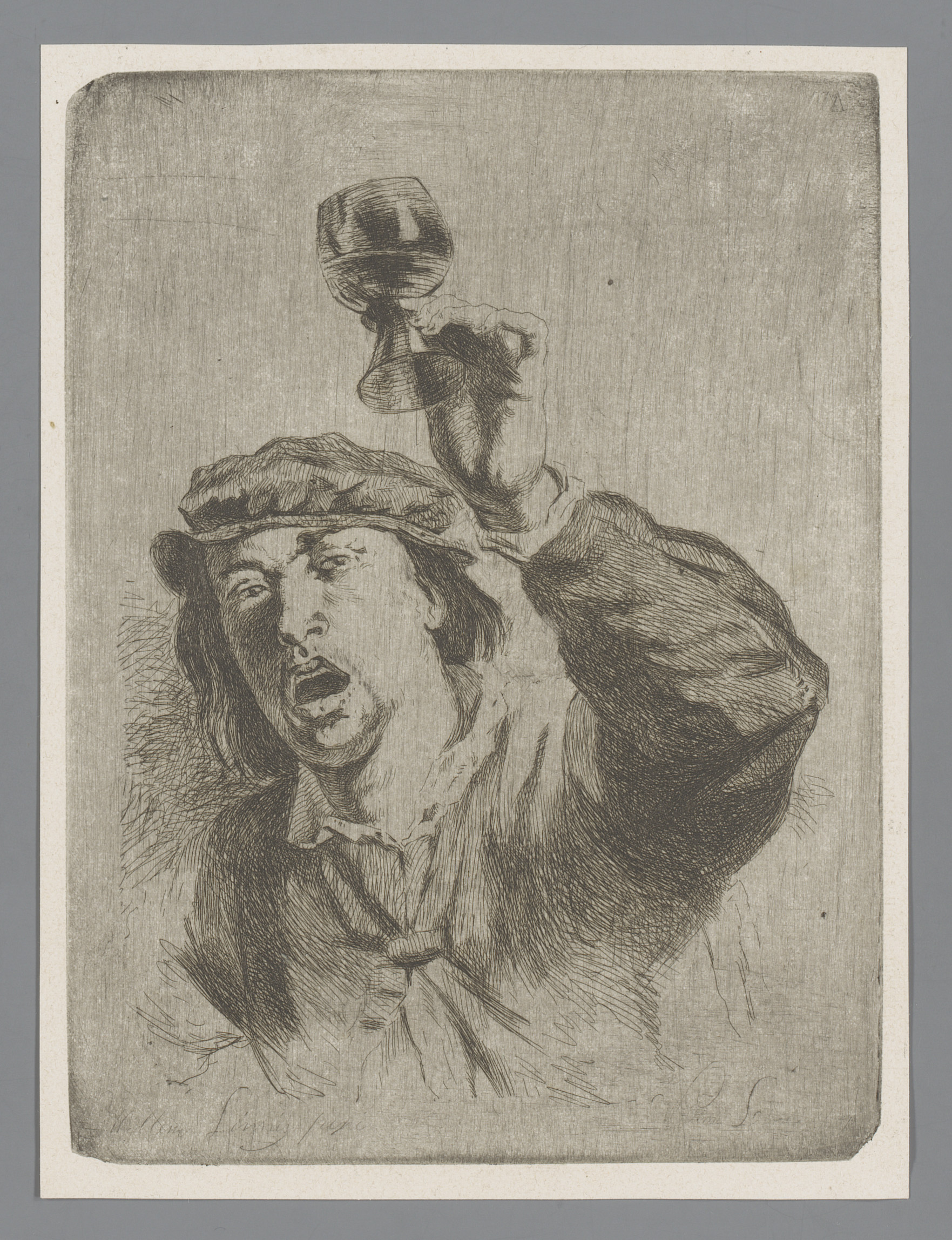Man met open mond en geheven glas
