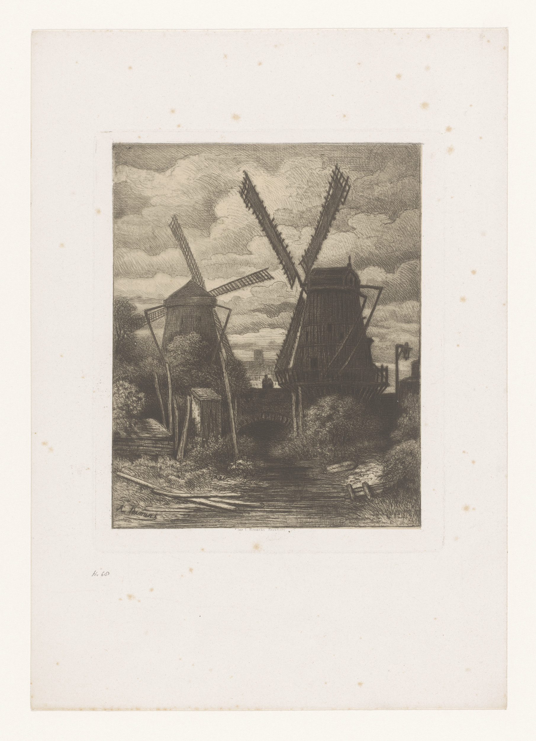 Twee molens bij een brug