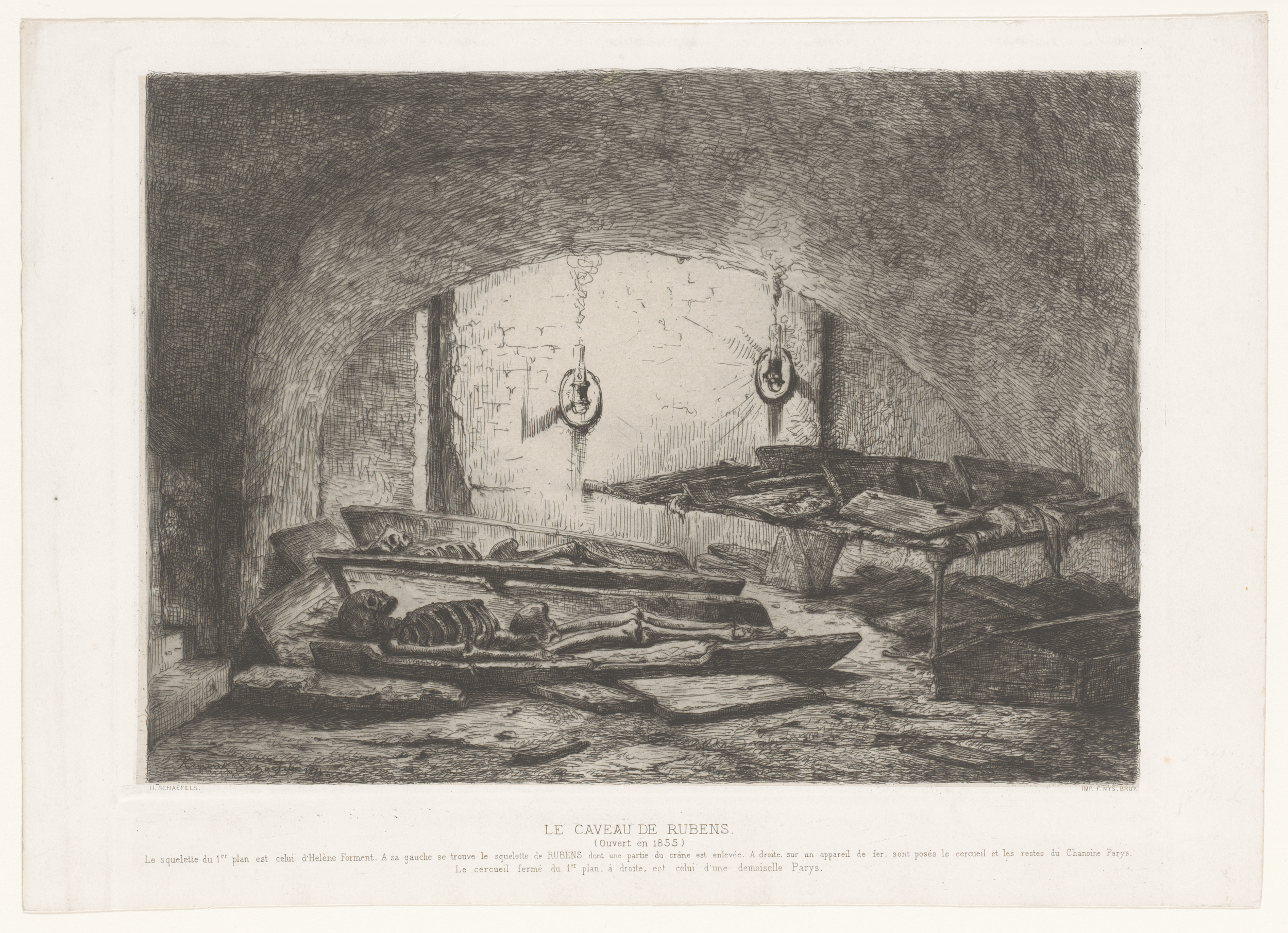 Grafkelder van Rubens met twee skeletten in een open...