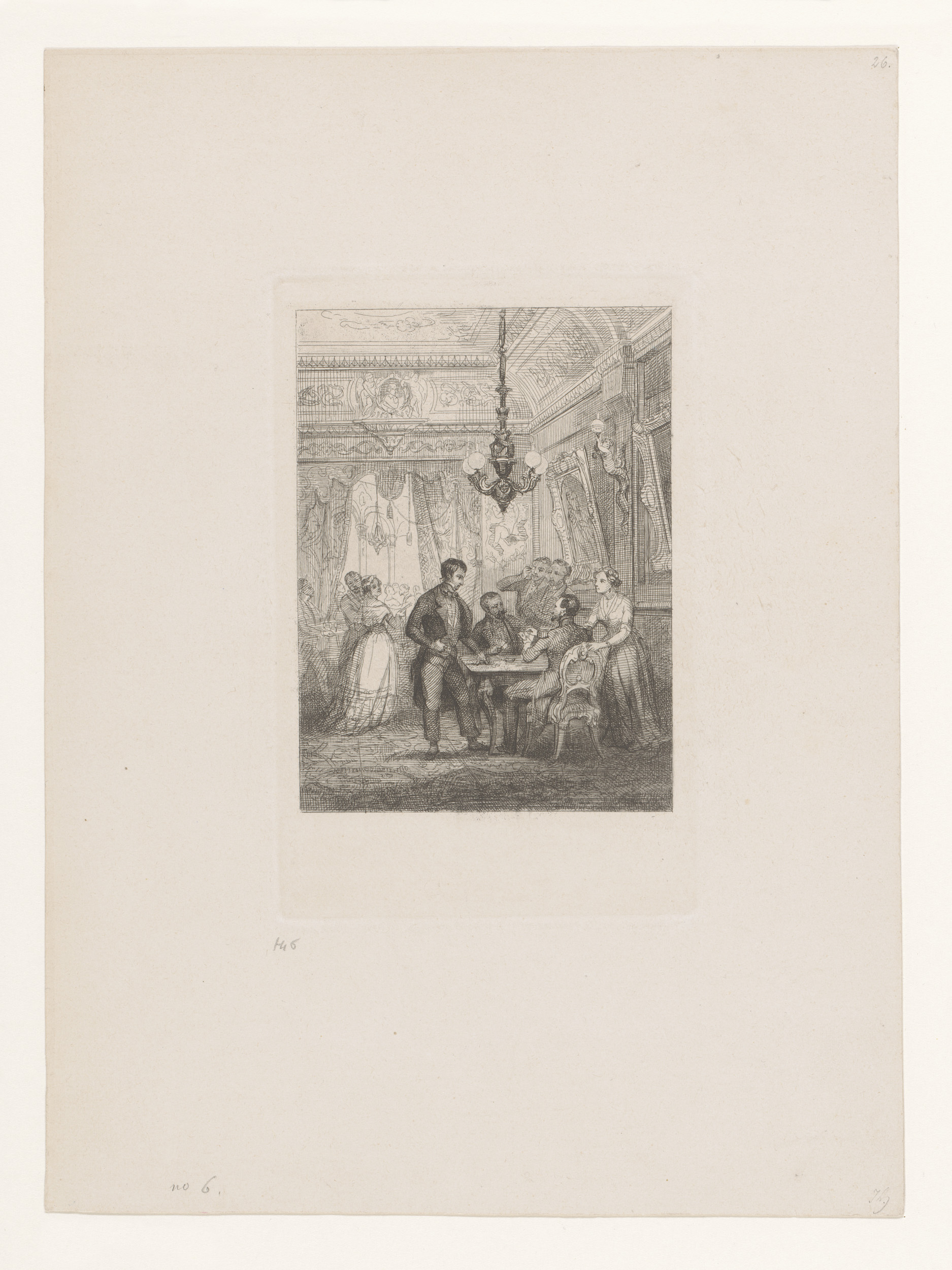 Salon met groep kaartspelers aan tafel