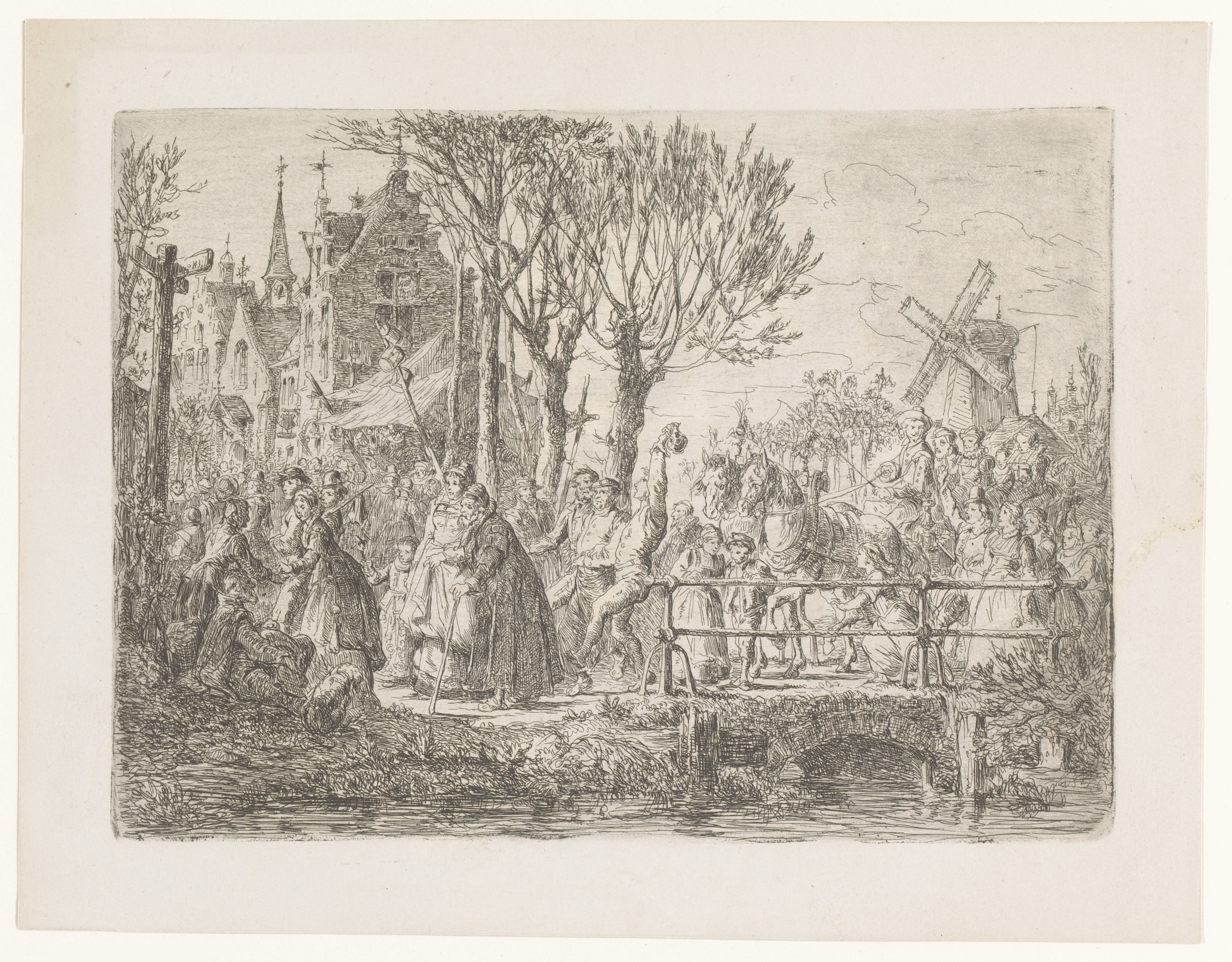 Stoet mensen op weg naar de kermis van Sint-Job te A...