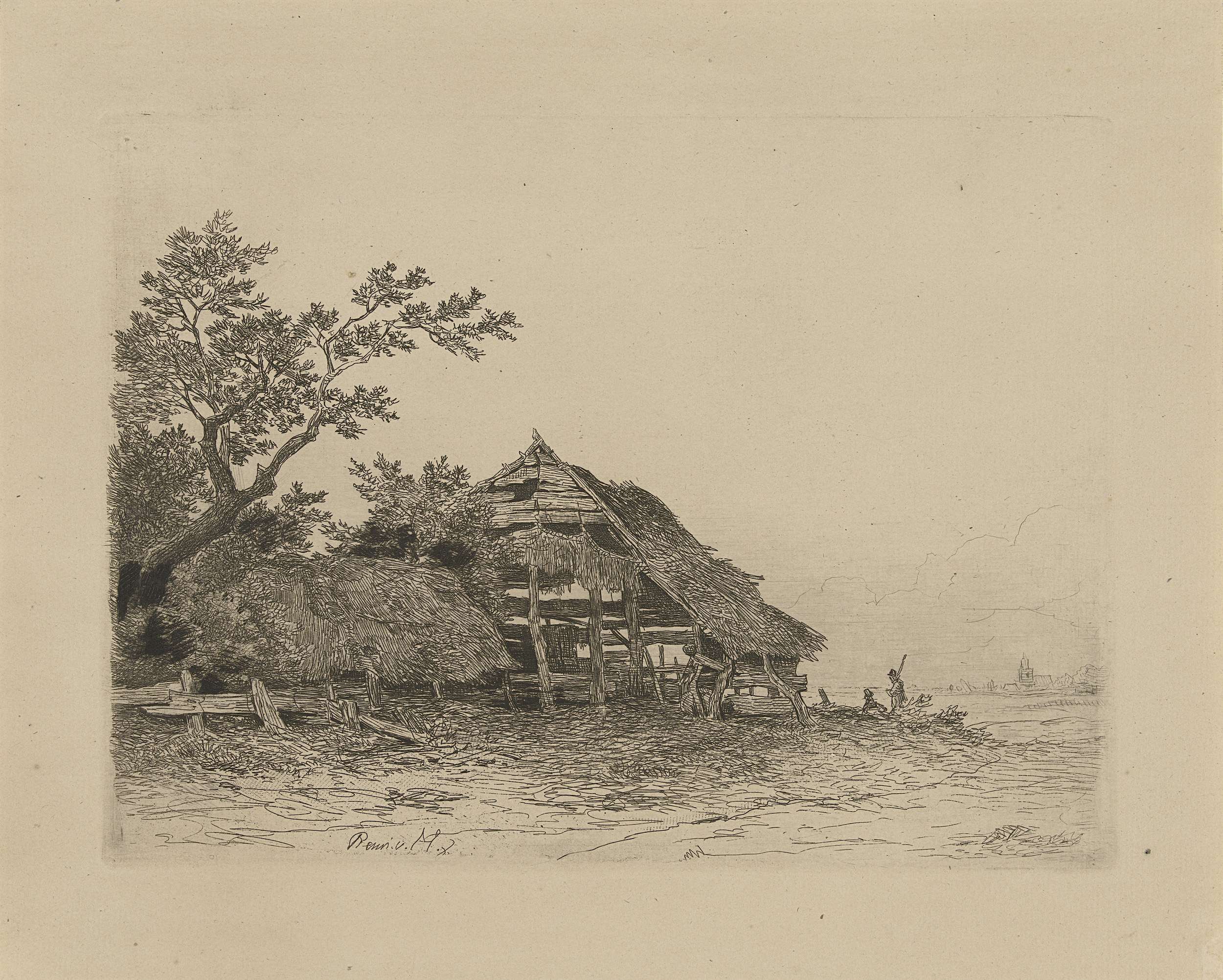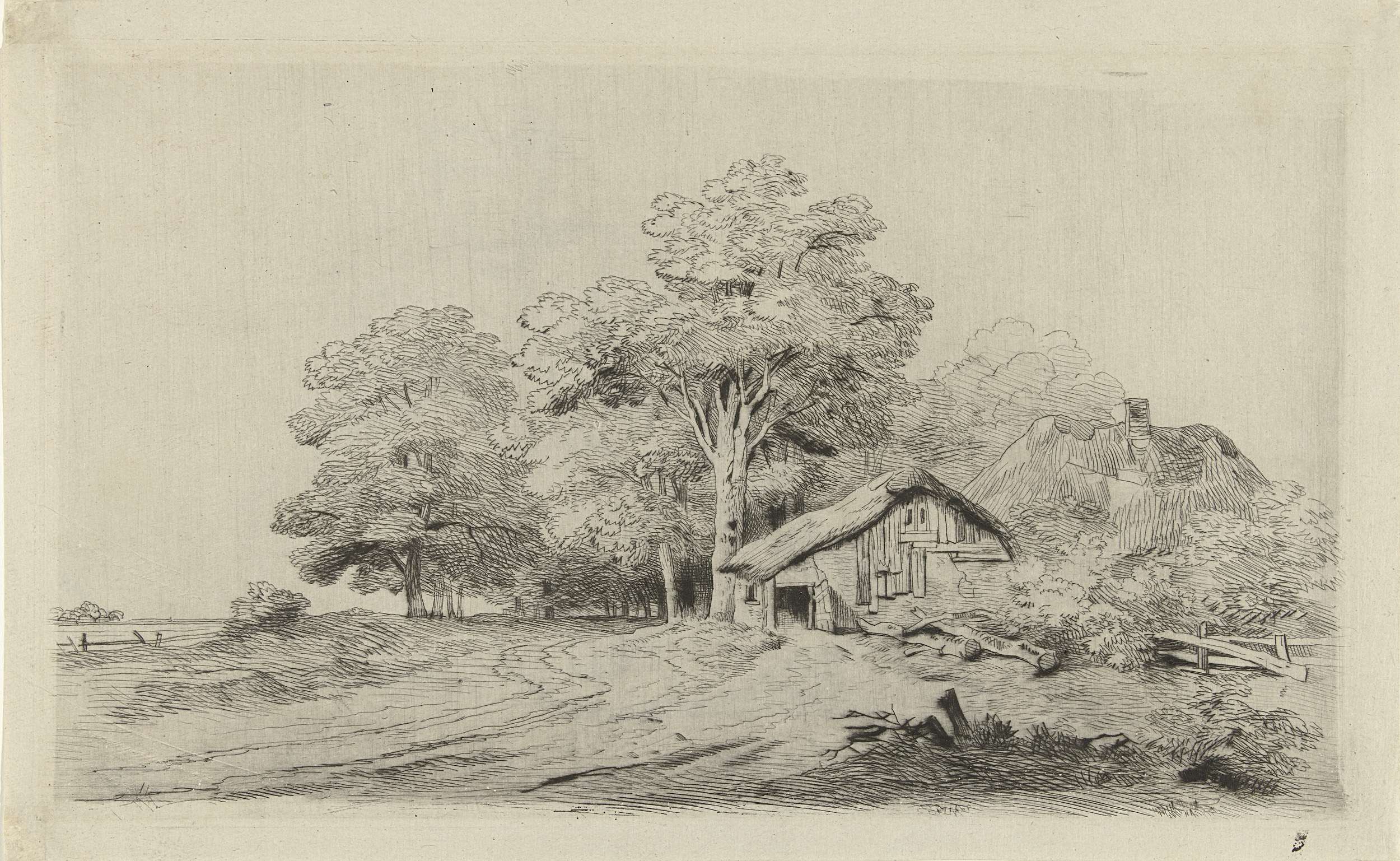 Landschap met een vervallen schuur
