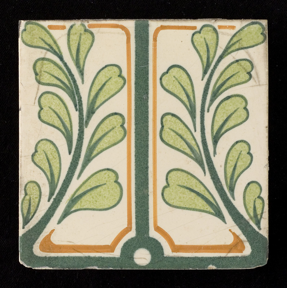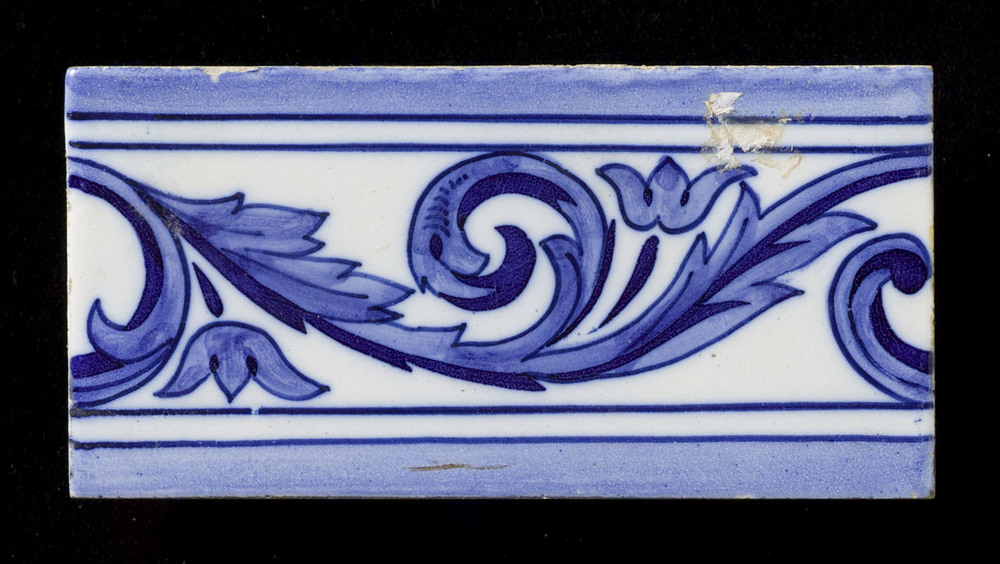 Tegel in tinglazuur, voorstellende deel van lambrise...