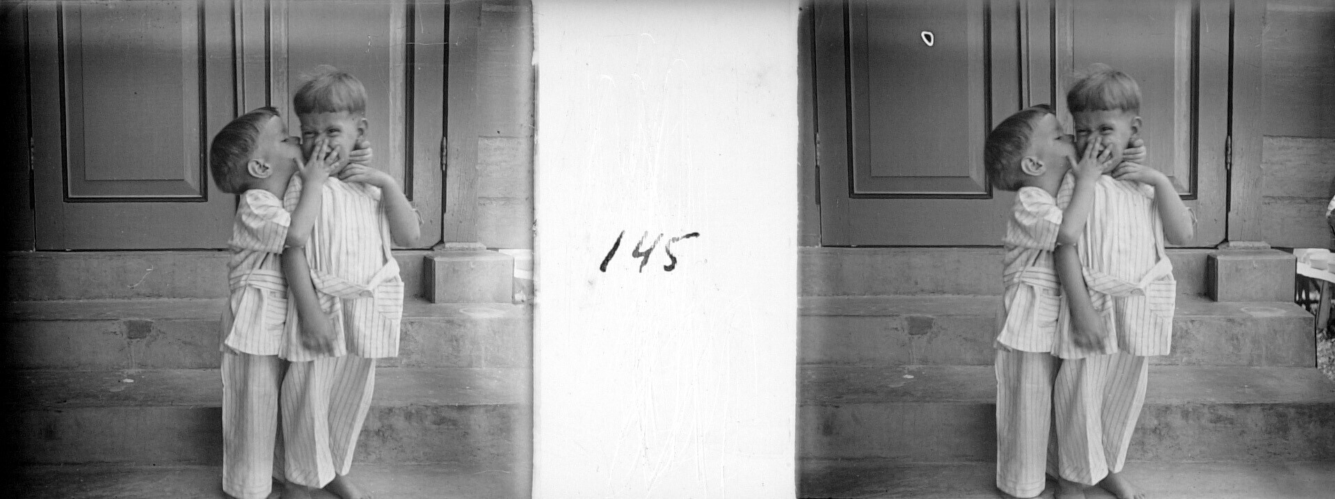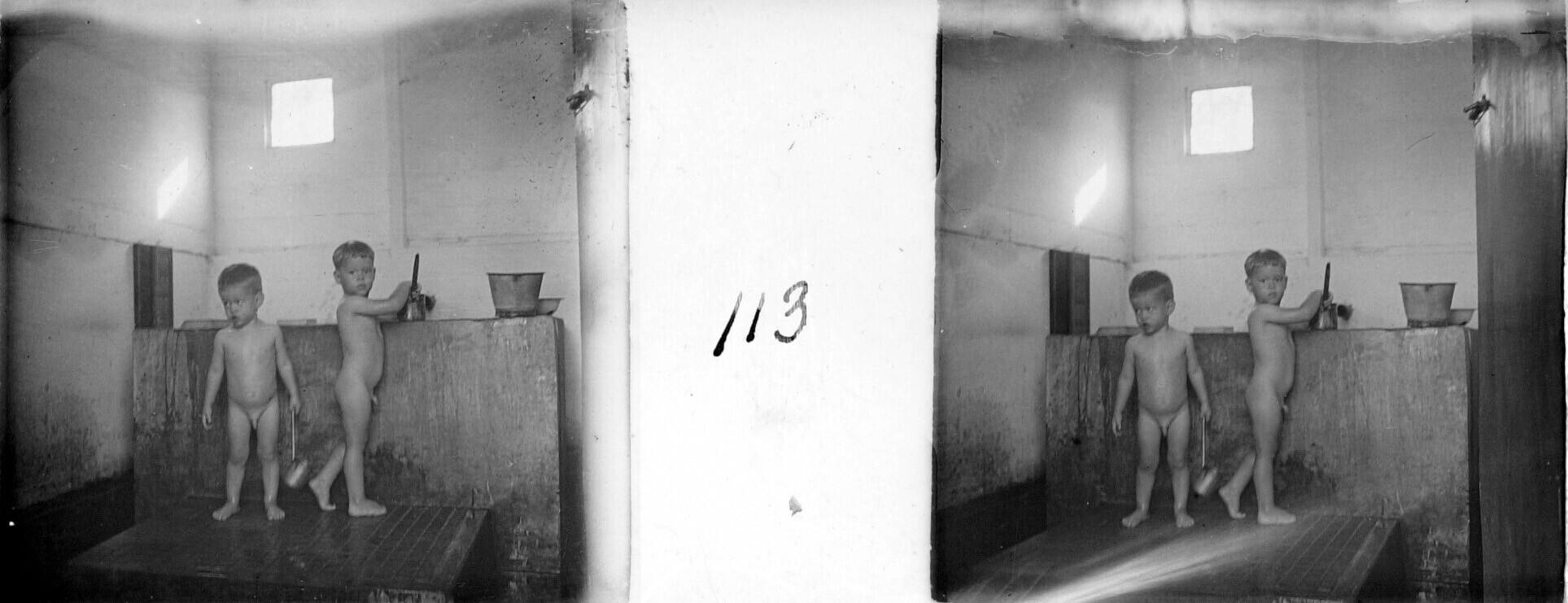 De broers Henk en Hans Japing in de badkamer, Olehleh