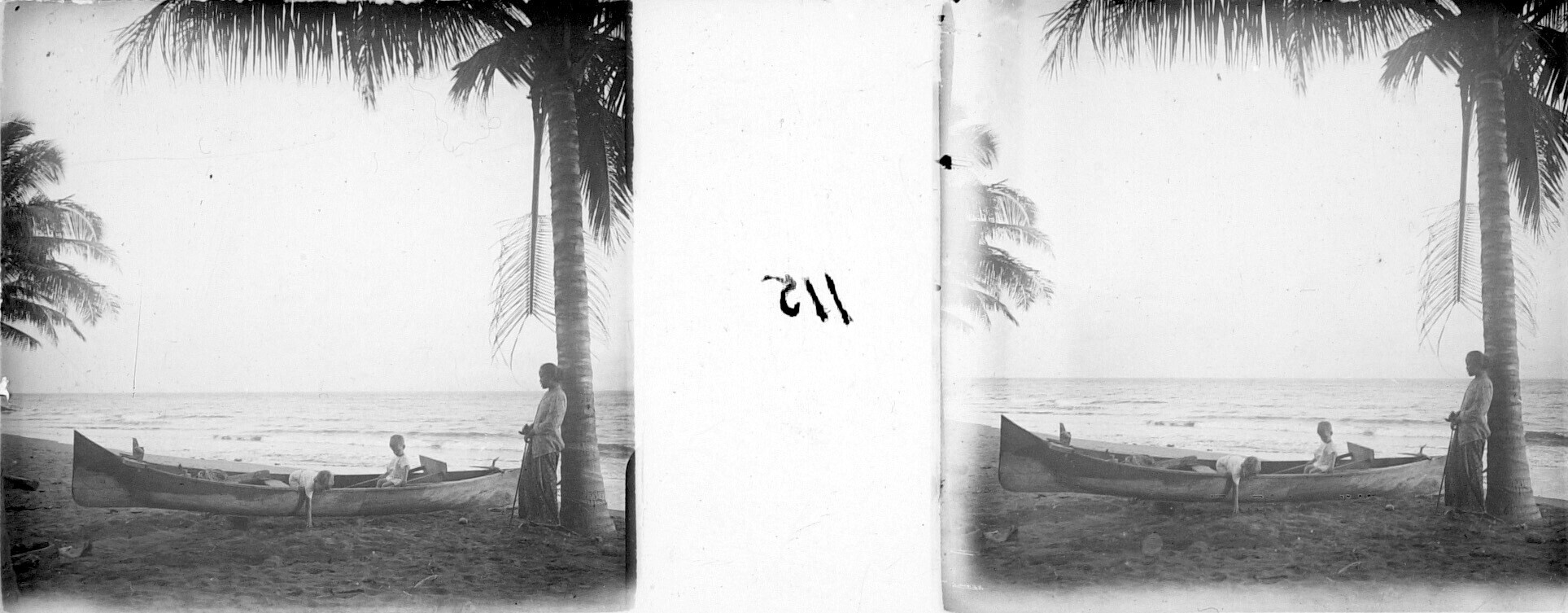 De broers Henk en Hans Japing in een prauw, tijdens ...