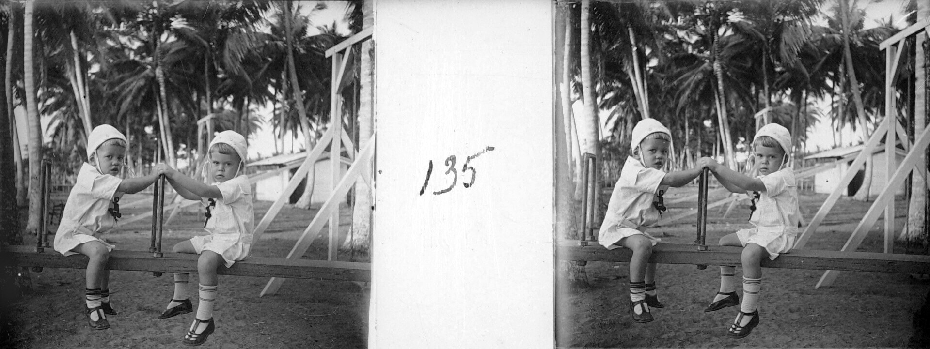 De broers Henk en Hans Japing op een wip bij badplaa...