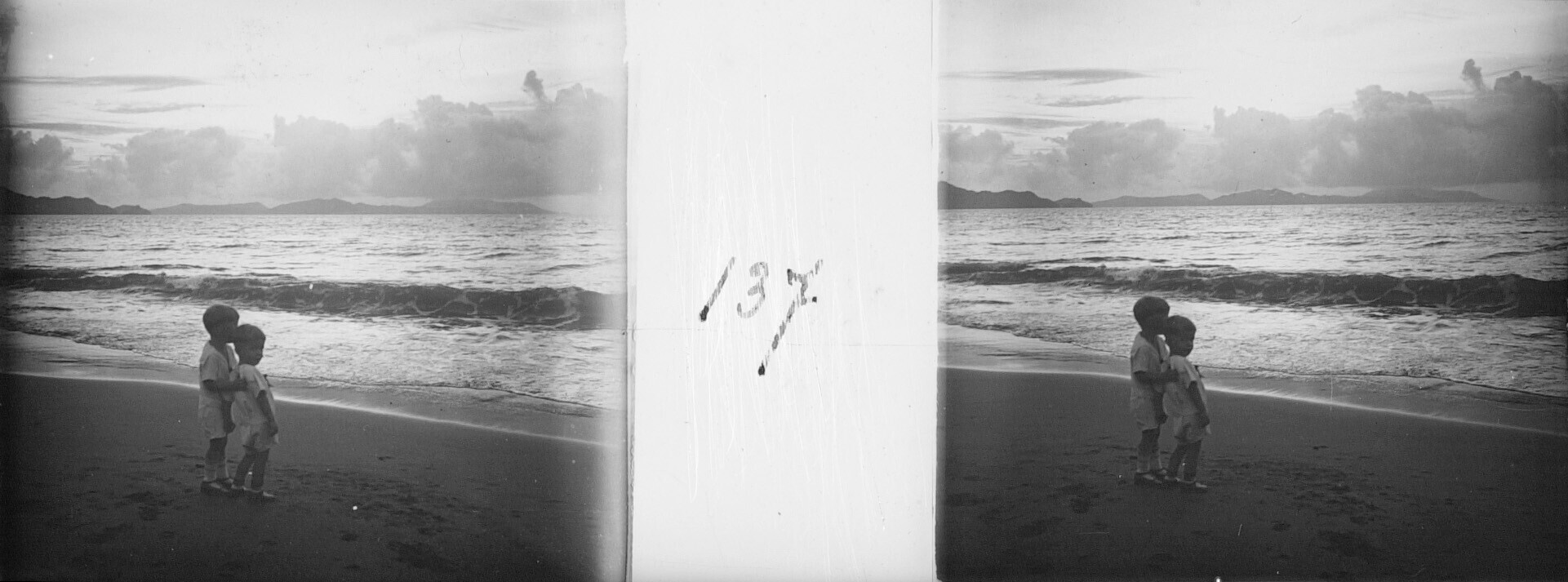 De broers Henk en Hans Japing aan het strand
