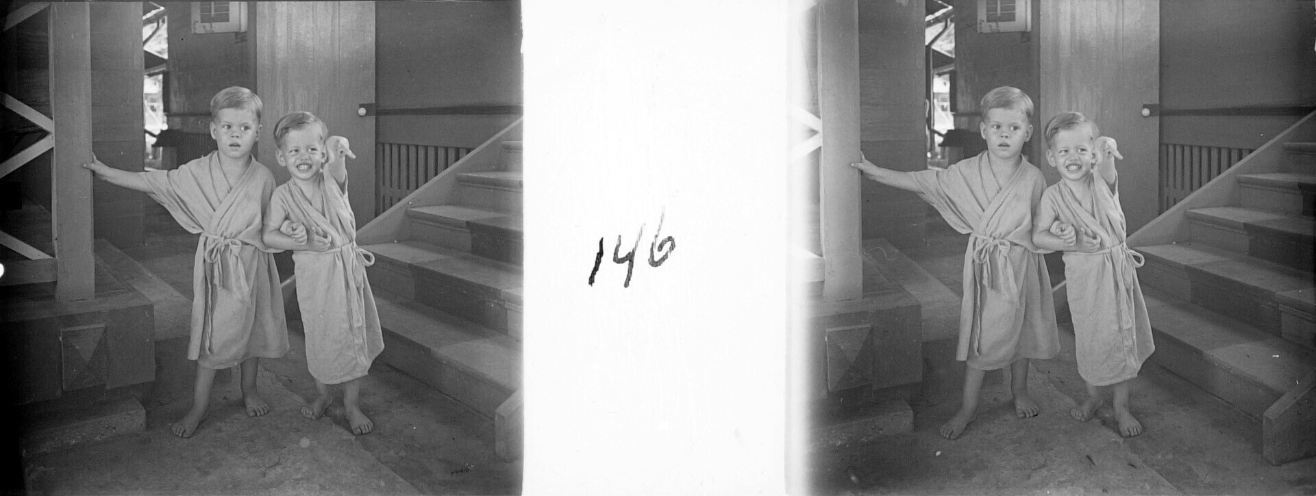 De broers Hans en Henk Japing in pyjama, Olehleh