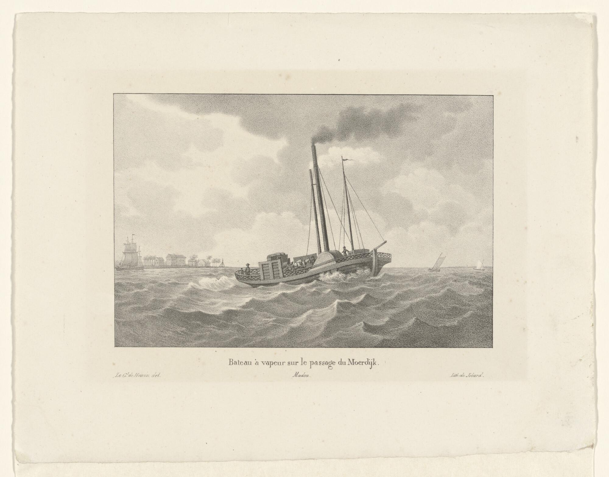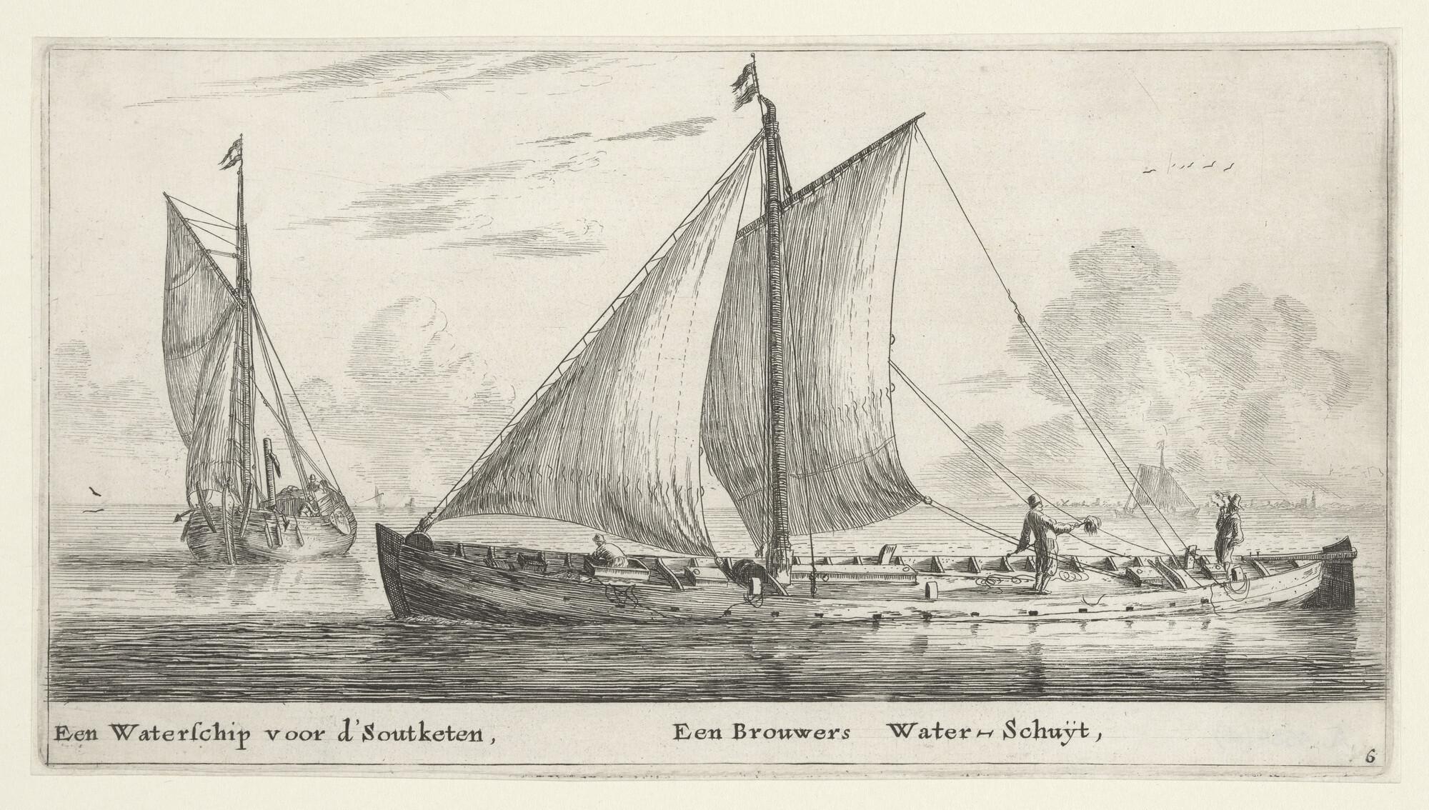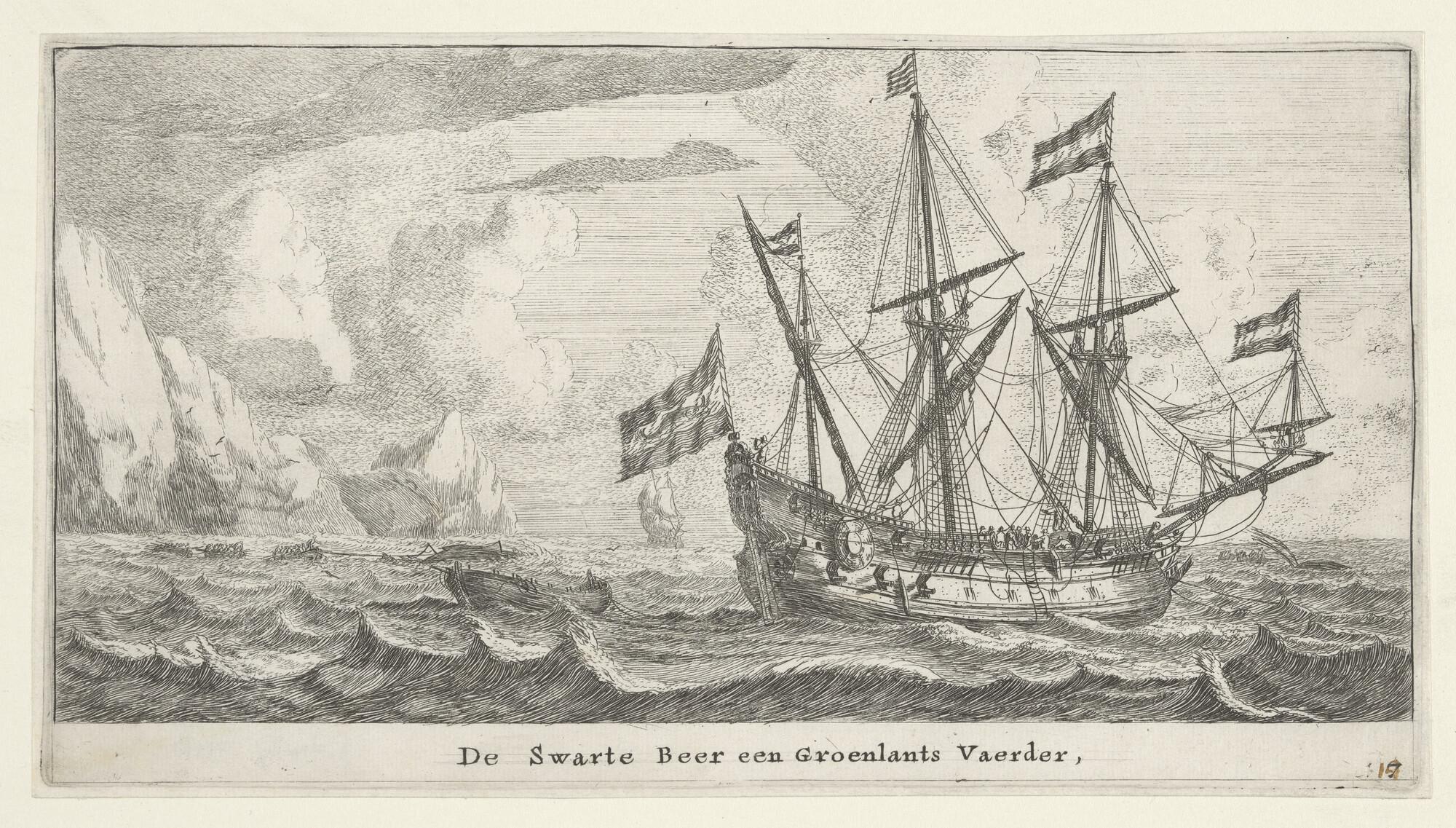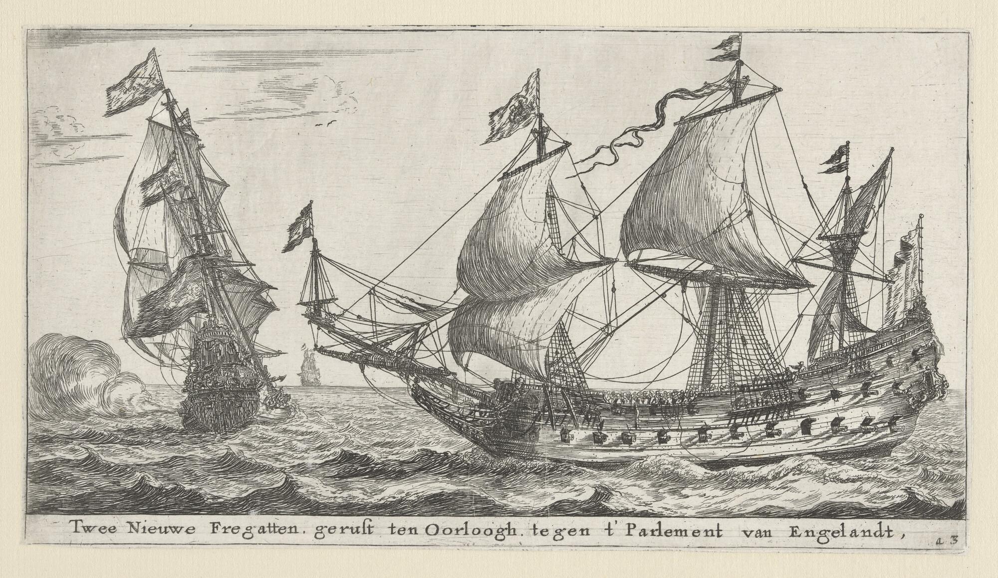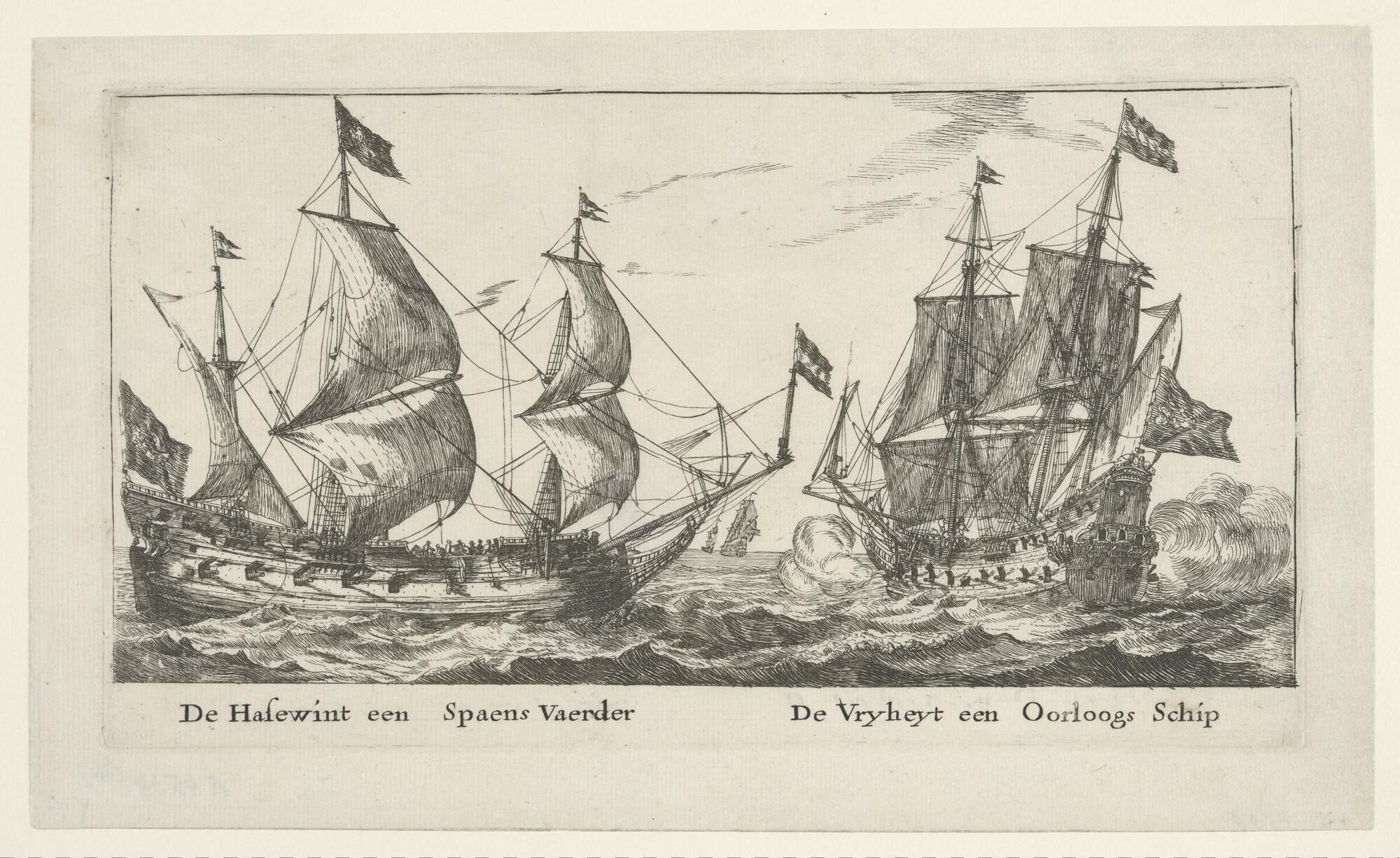 Het fluitschip de 'Hasewint' en het oorlogsschip de ...