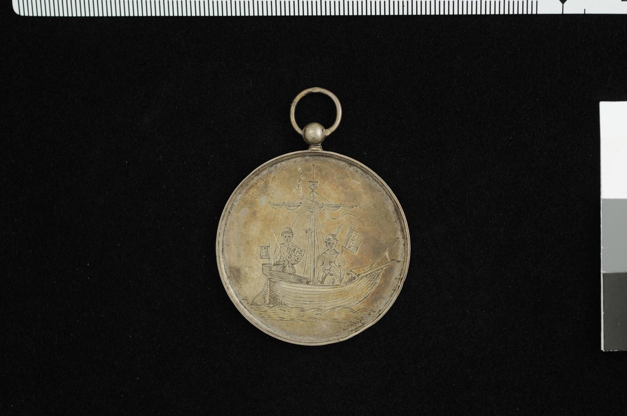 Draagpenning met gegraveerde afbeelding van een kogg...
