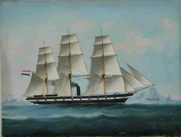 Het fregatschip Bato uit Dordrecht ter hoogte van Texel