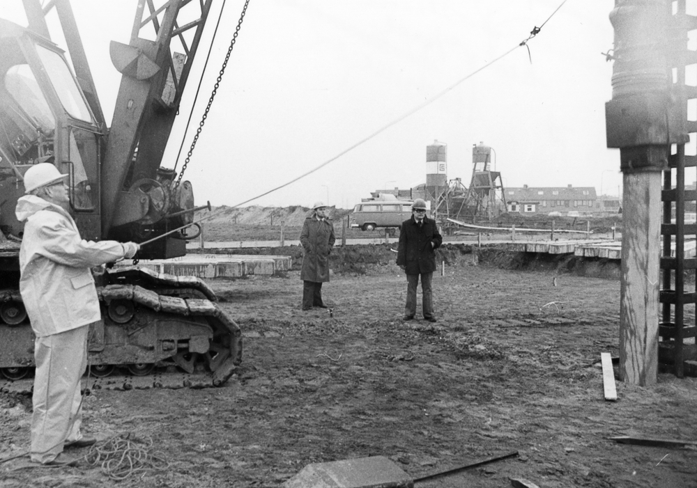 Wethouder J.J. Postma slaat de eerste paal voor een ...