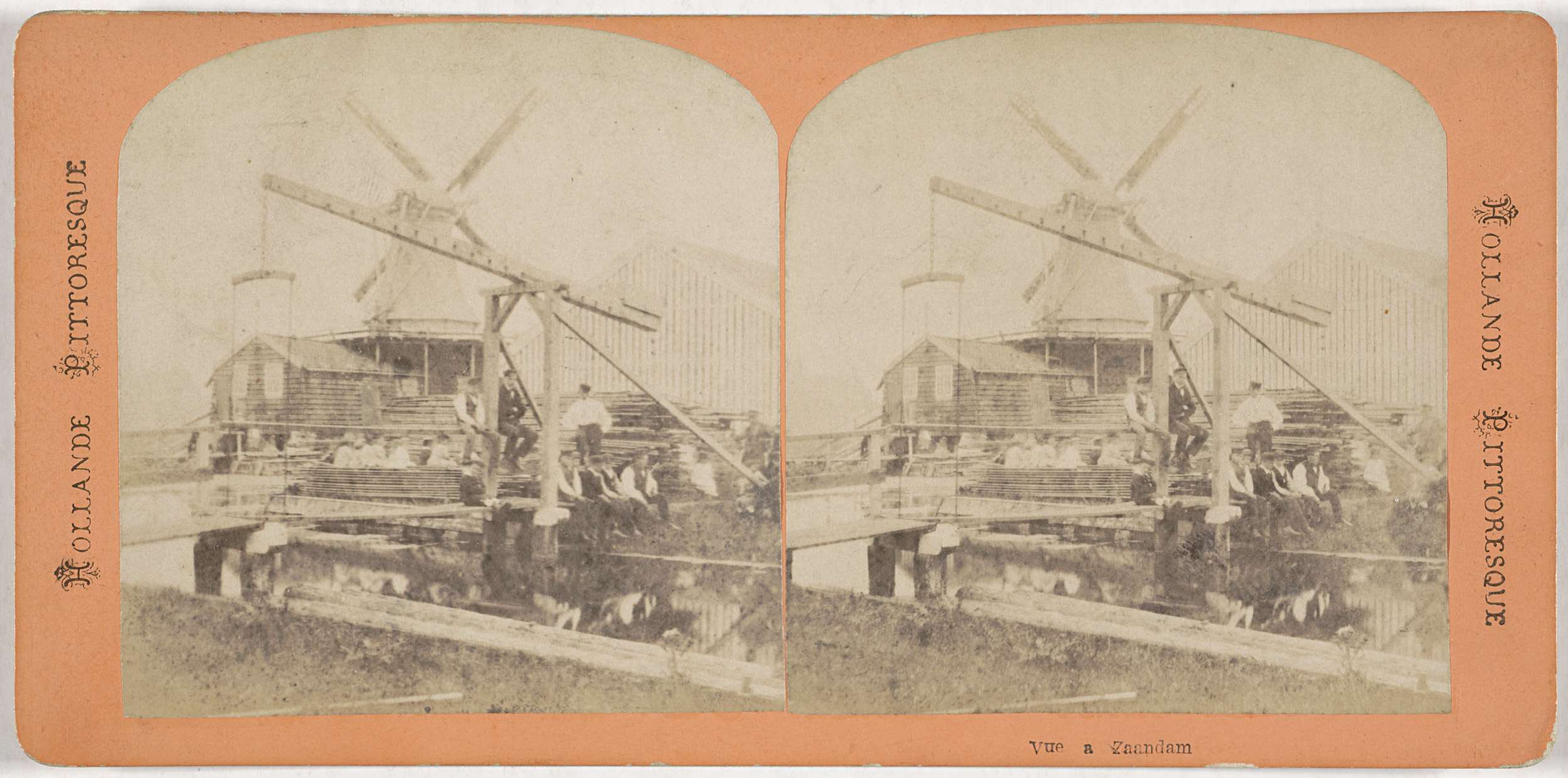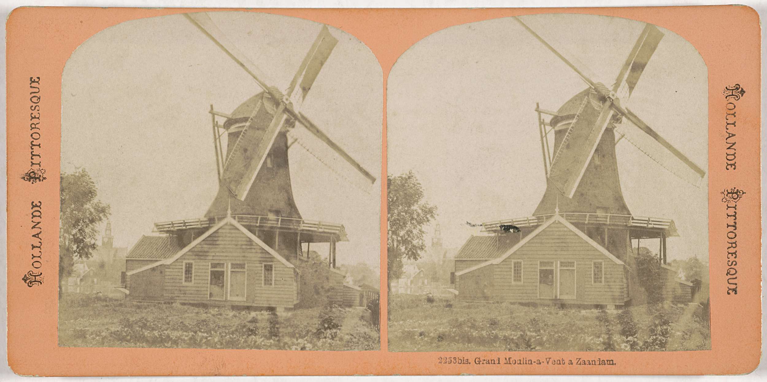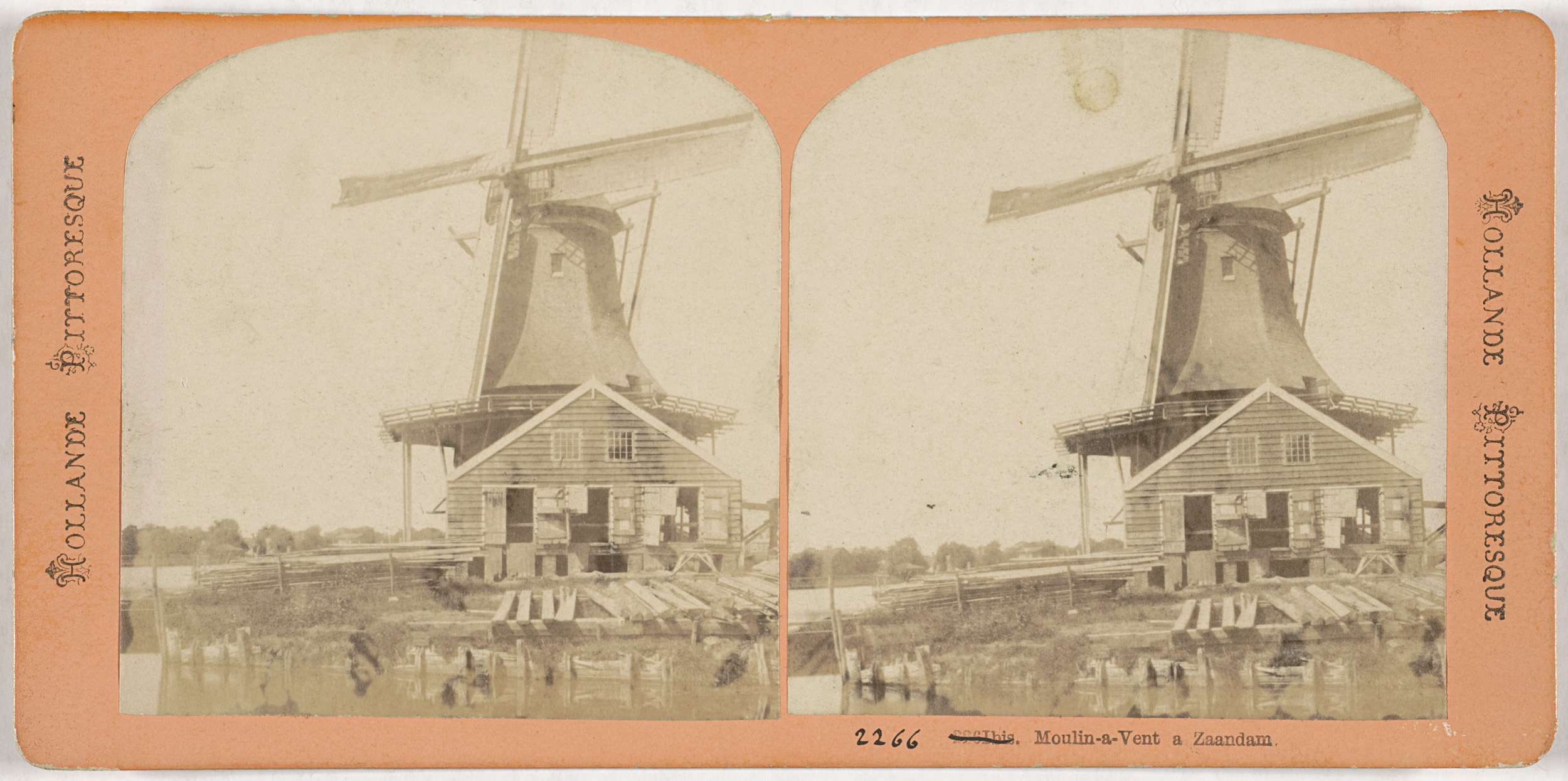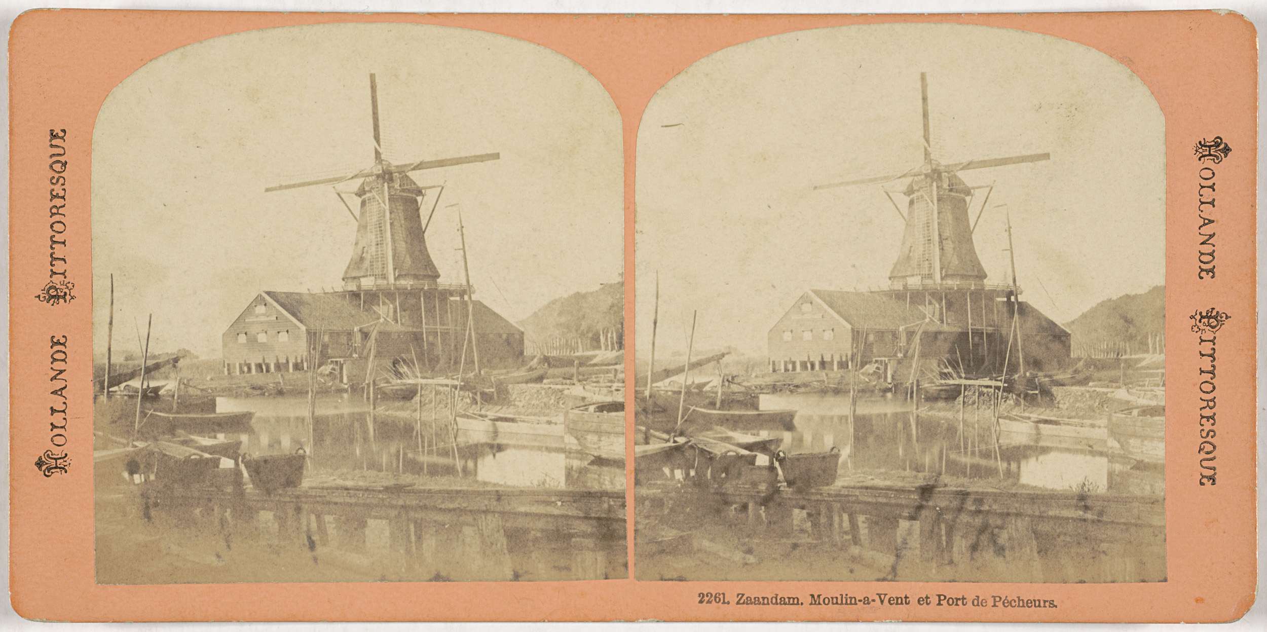 Gezicht op een molen, mogelijk De Pauwin in Zaandam
