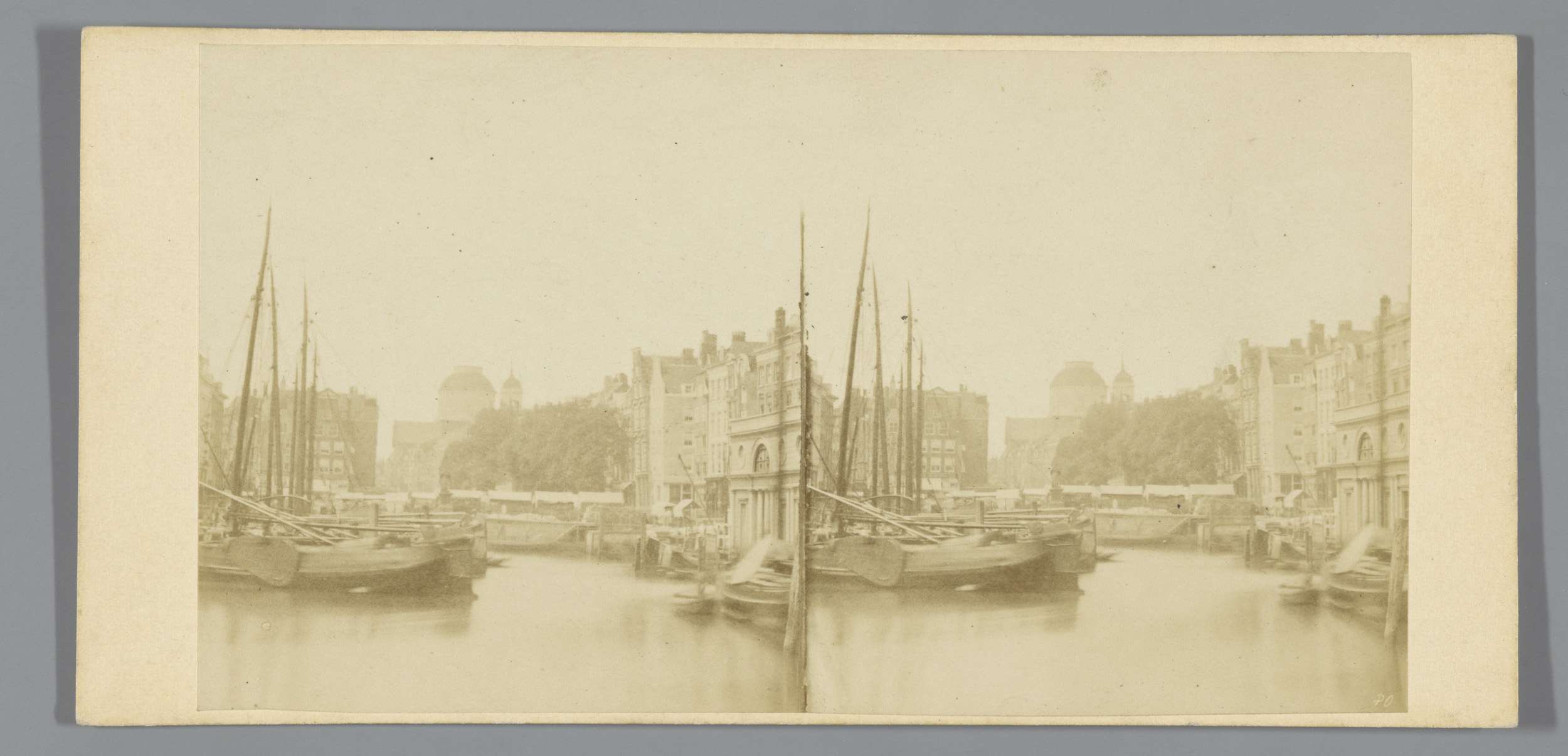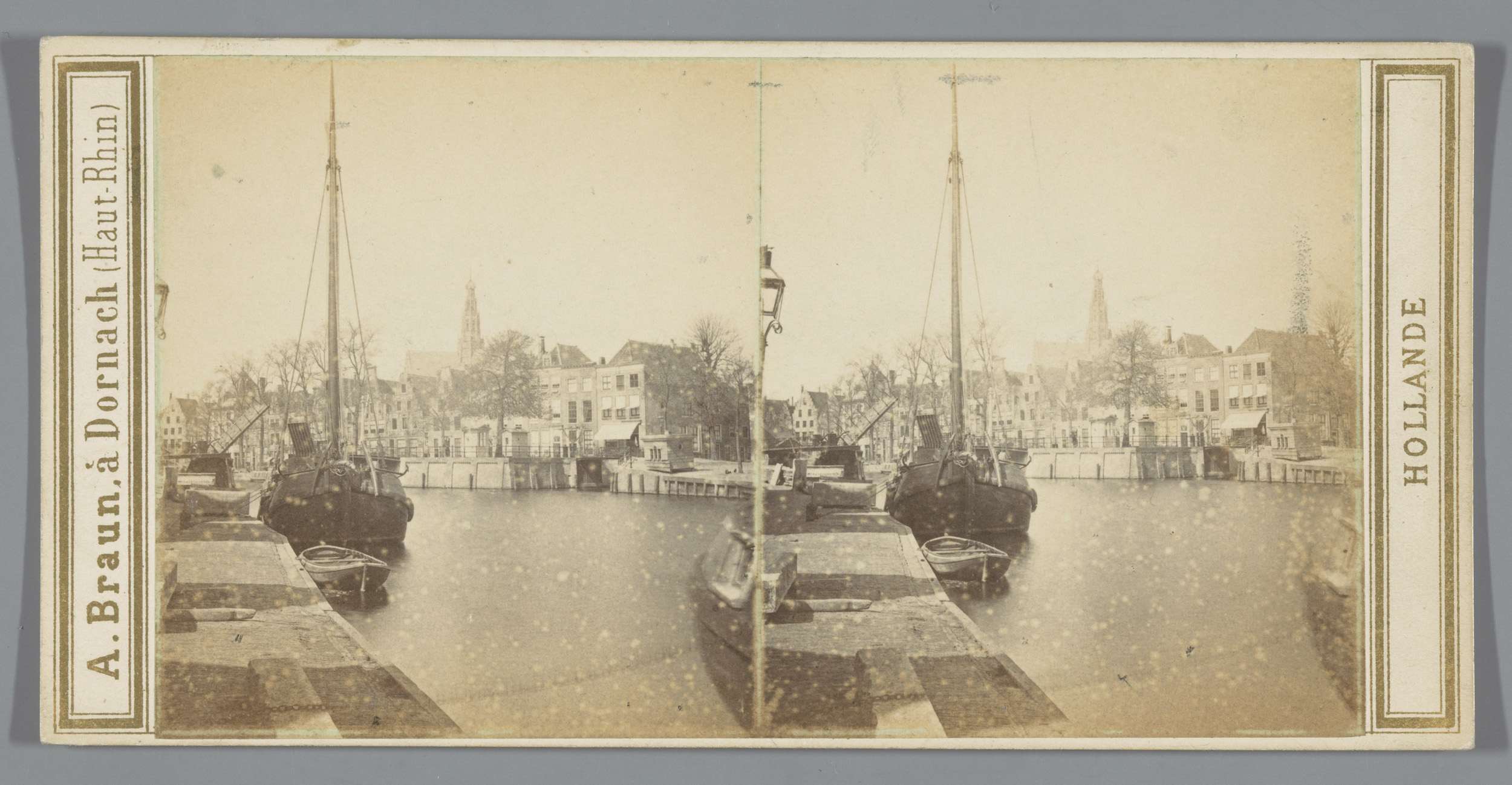 Gezicht op de Wijnhaven en de koepel van de Groothoo...