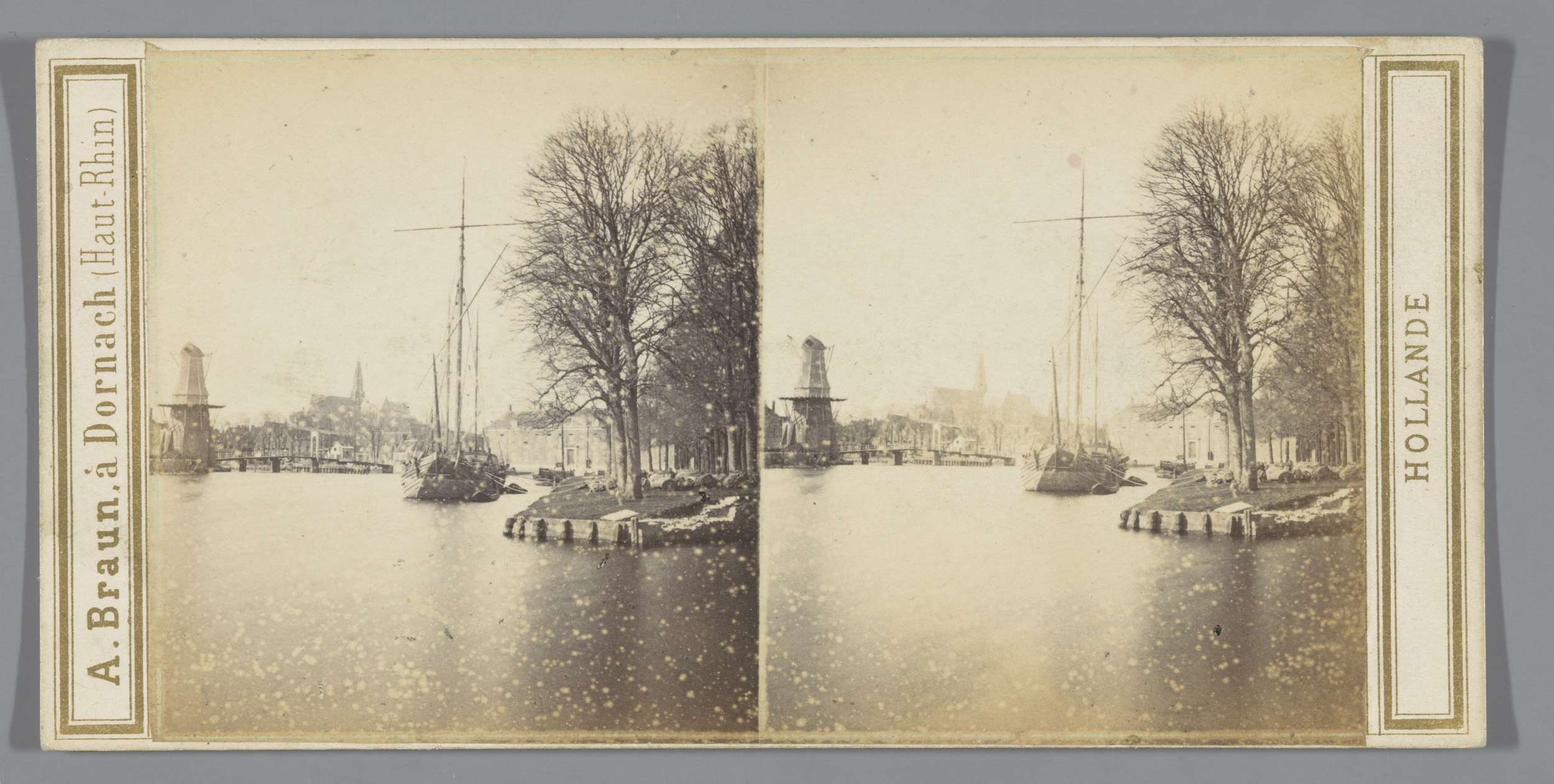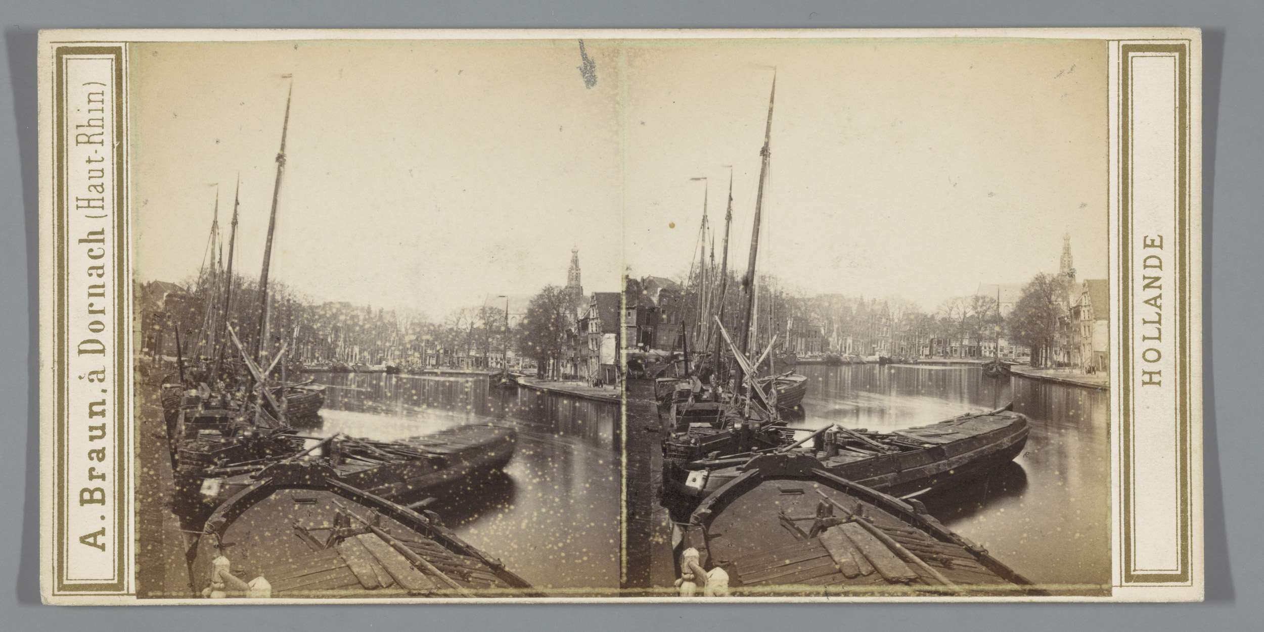 Gezicht op het Spaarne te Haarlem. In de verte de Si...