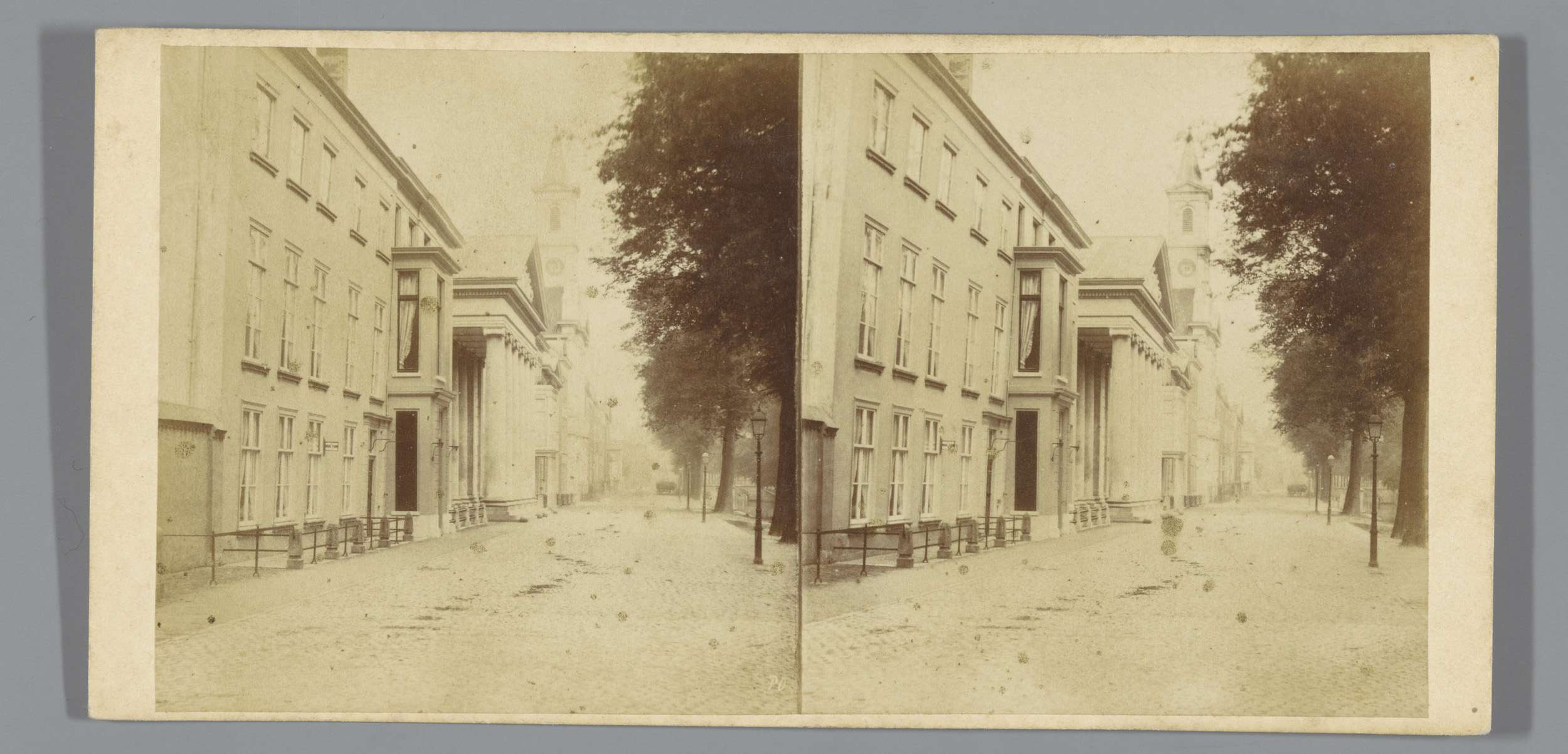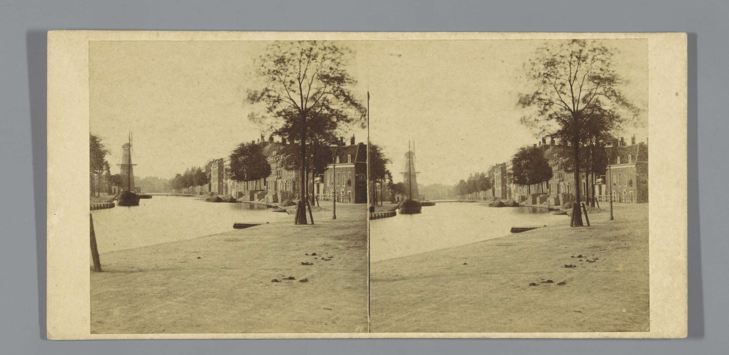 Gezicht op de Oude Singel in Leiden, in de verte de ...
