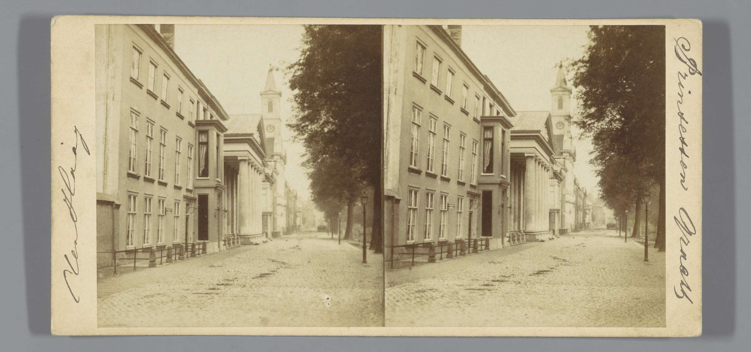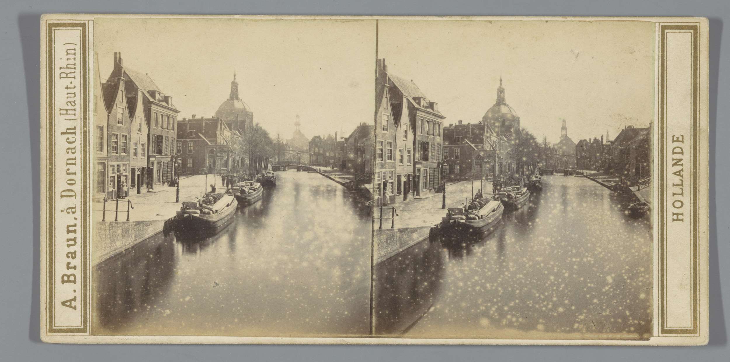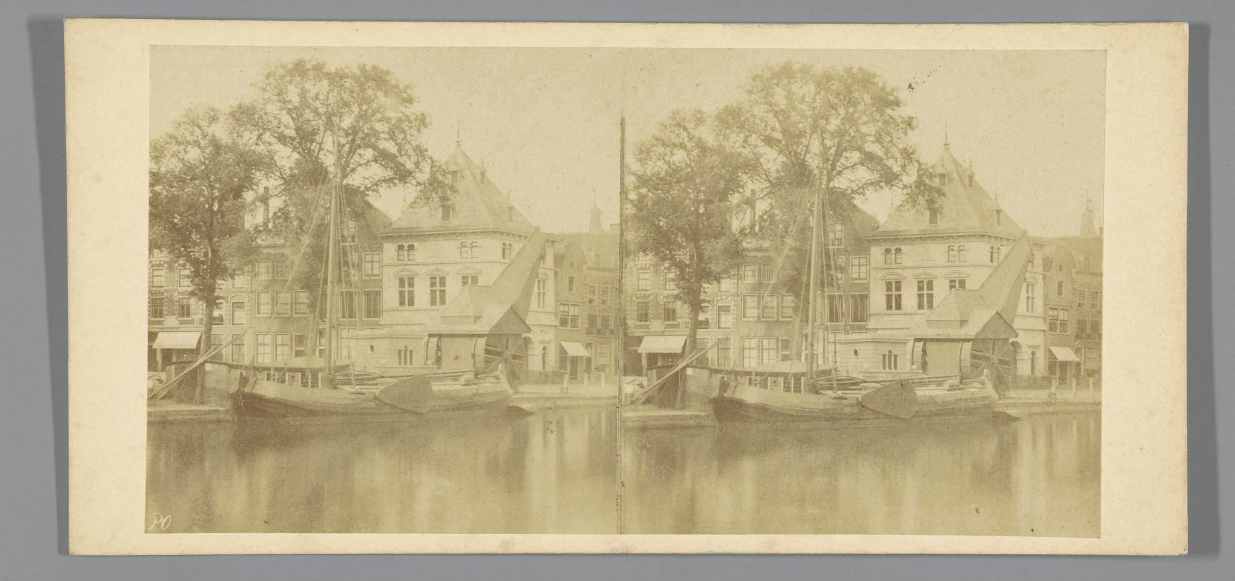 Gezicht op het Rapenburg, Leiden. Links het Academie...