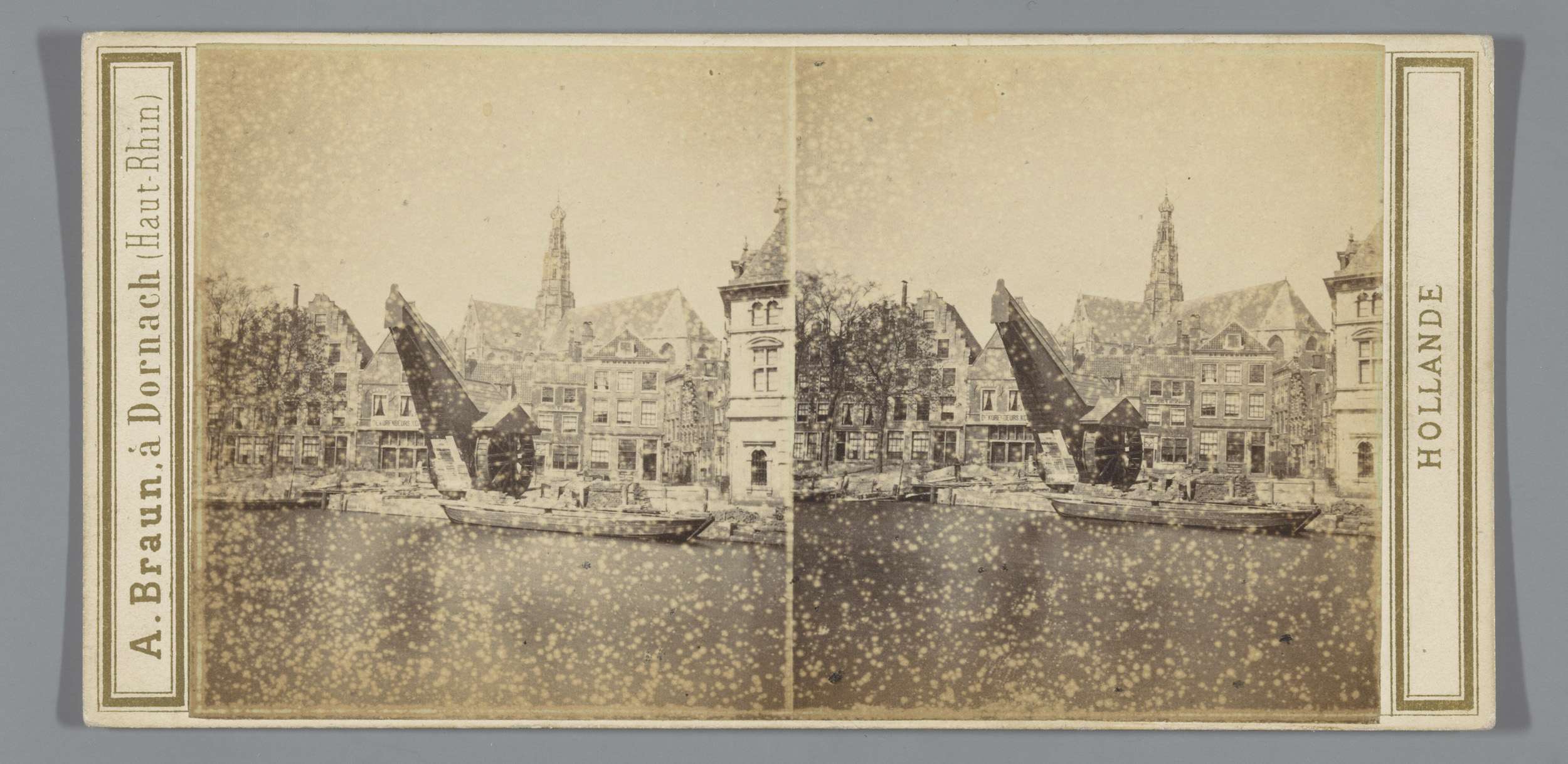 Gezicht op de Oudegracht en het stadhuis, Utrecht