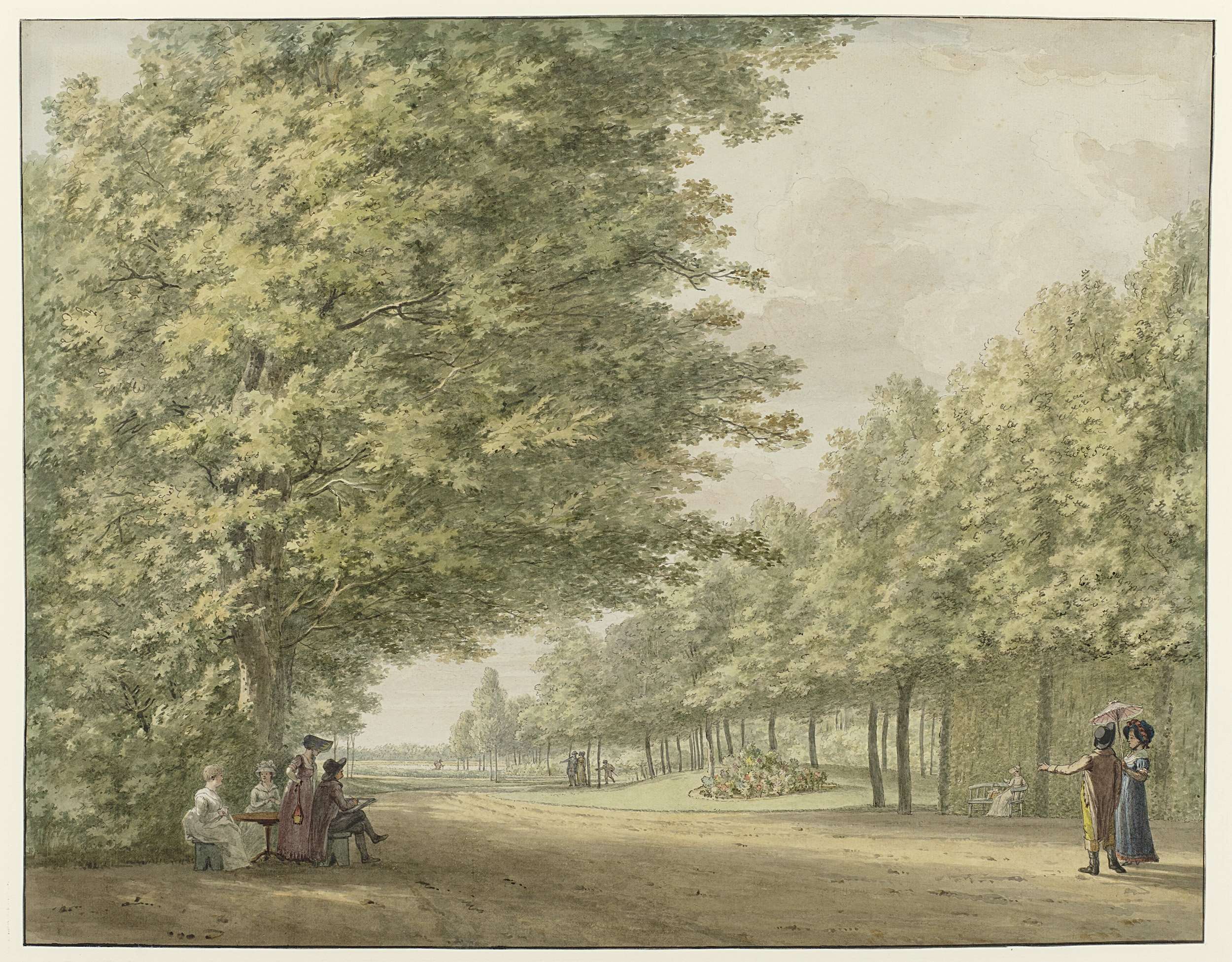 Landschap met een weg onder bomen