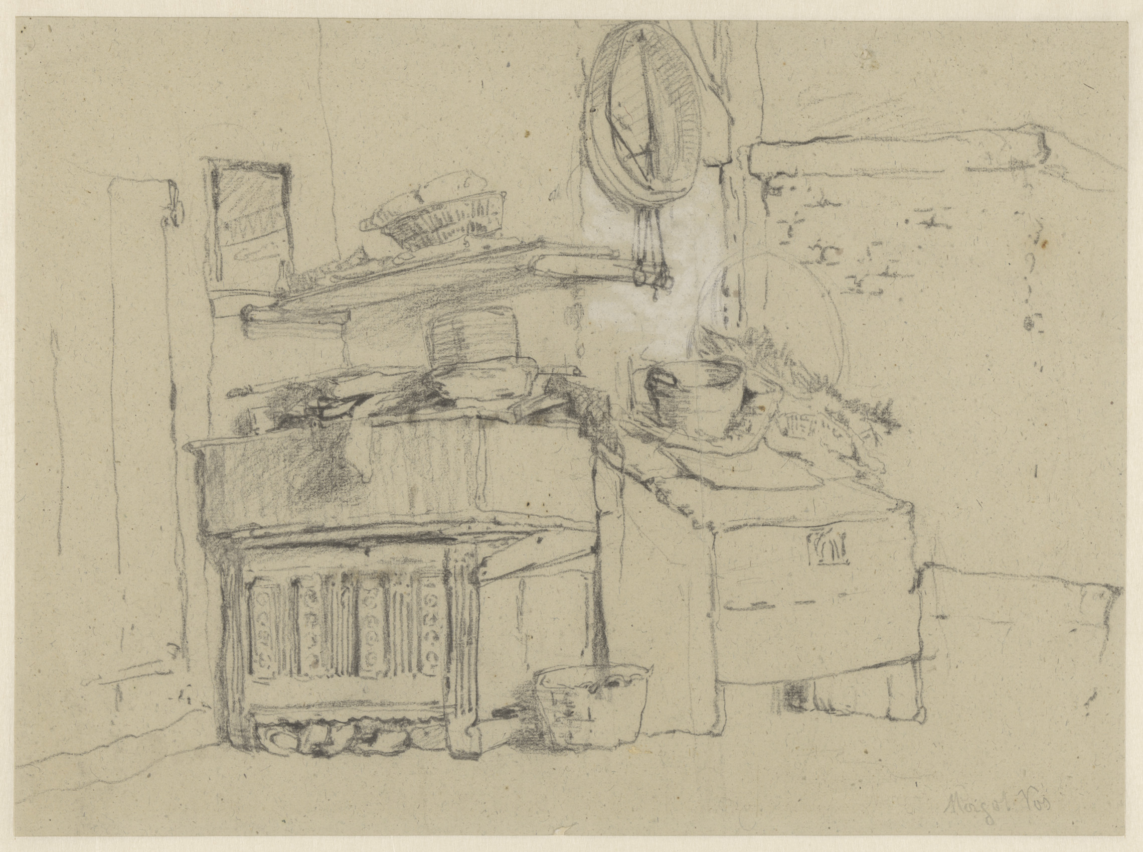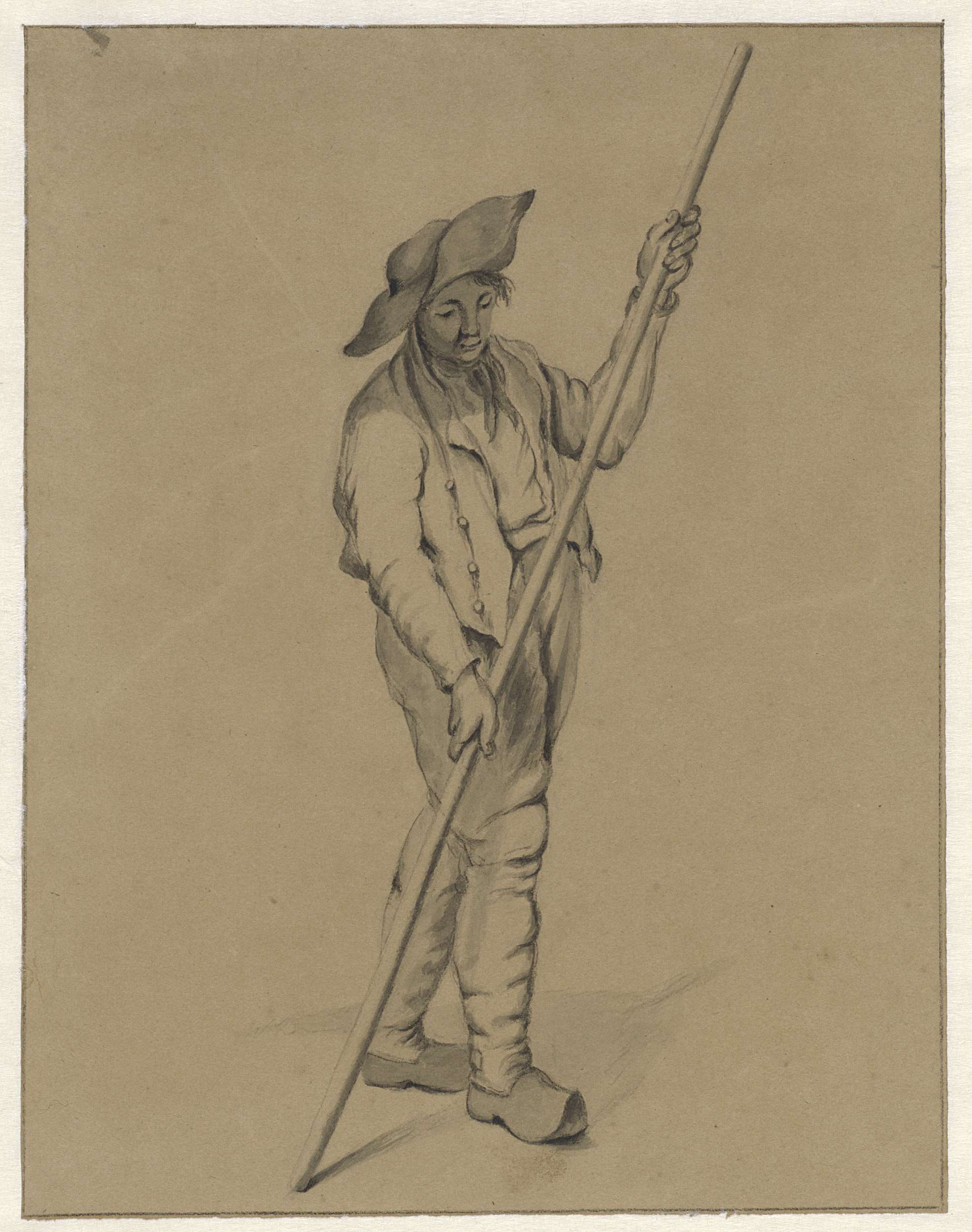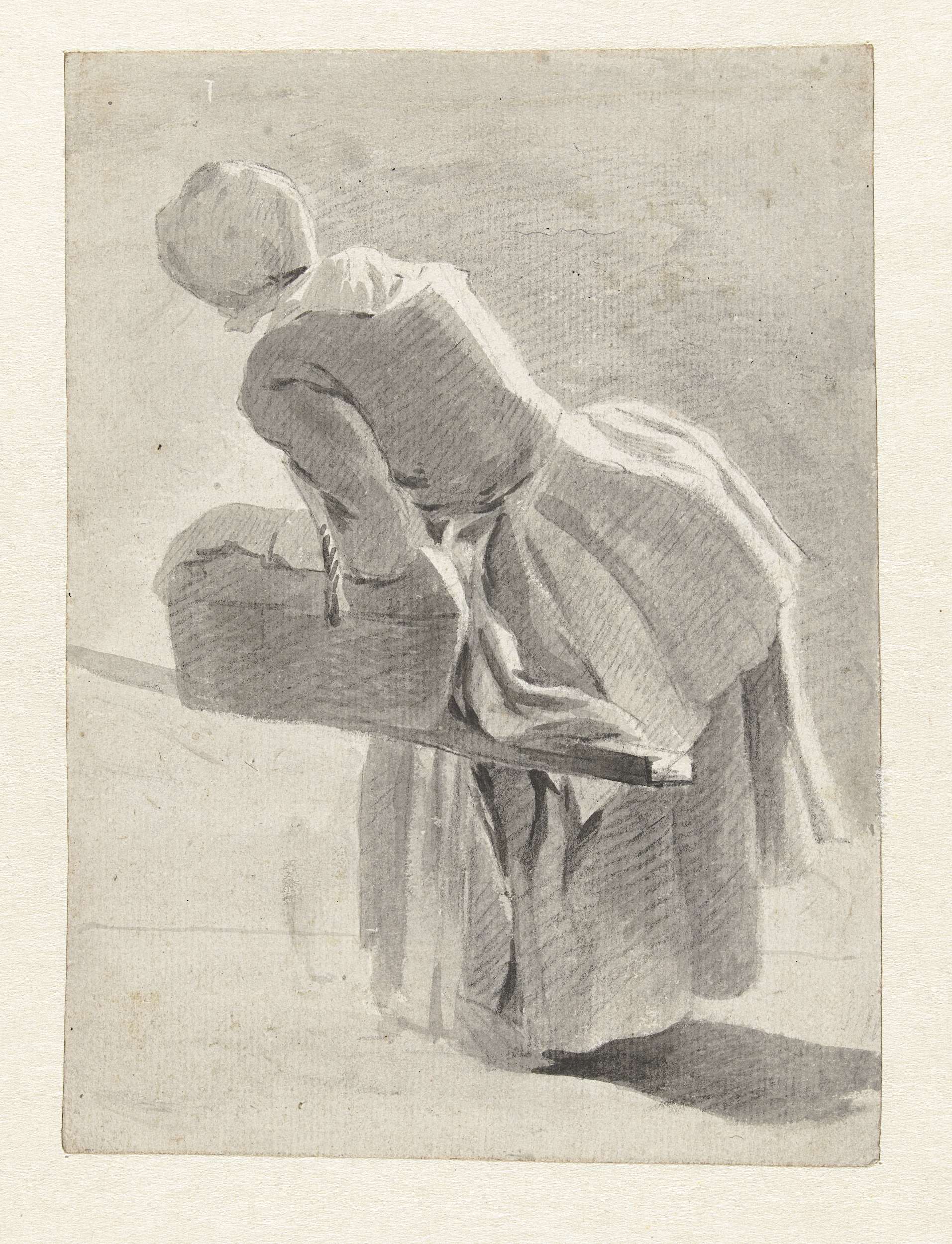 Rustende dienstmaagd met een mand, op de rug gezien