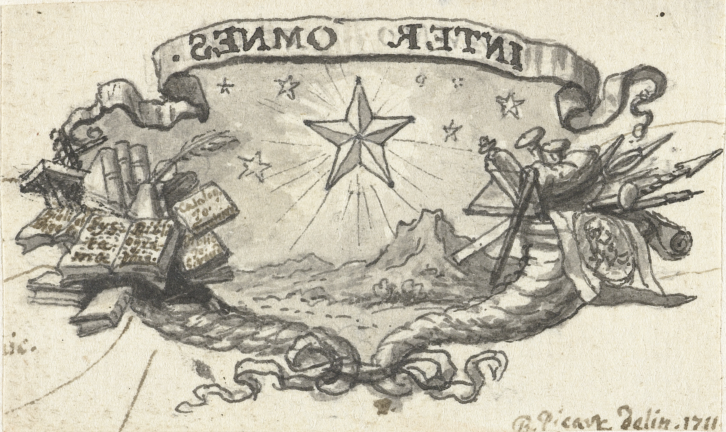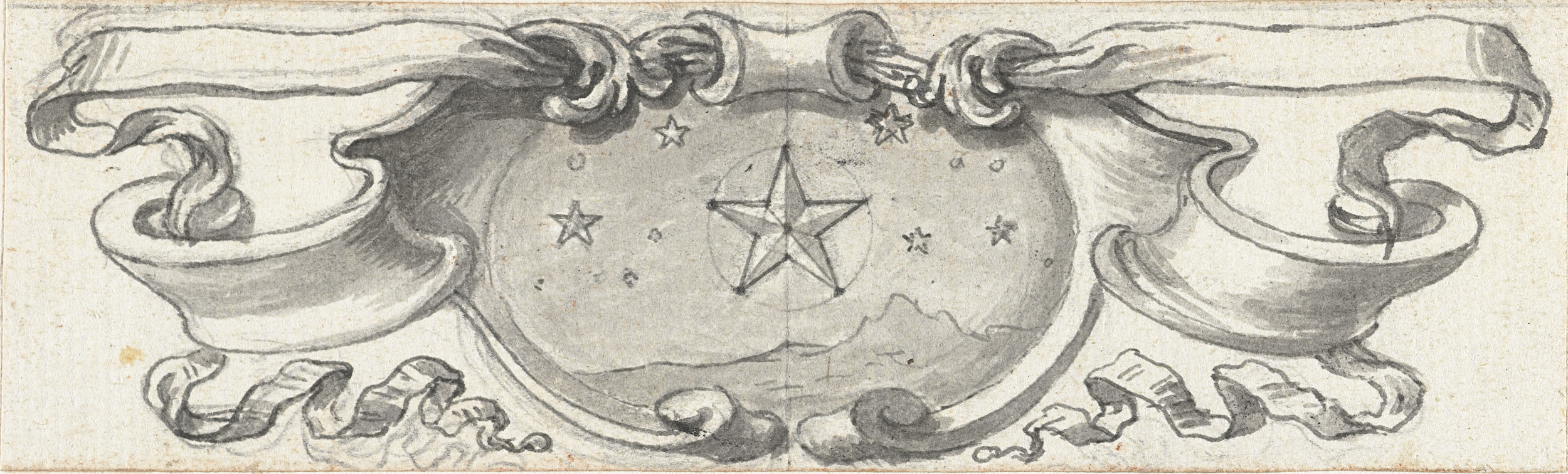 Vignet met ster boven landschap