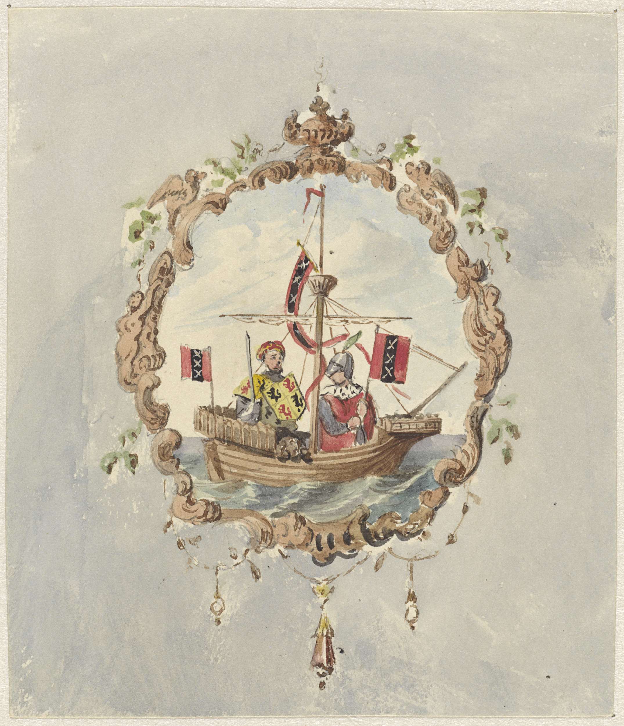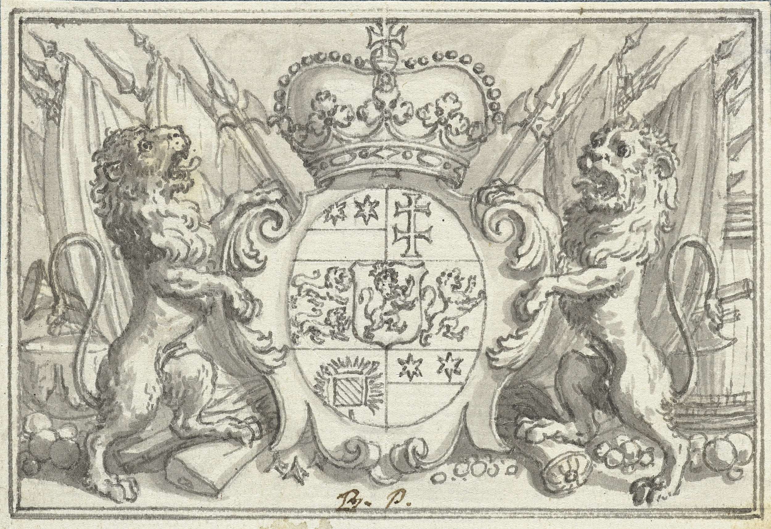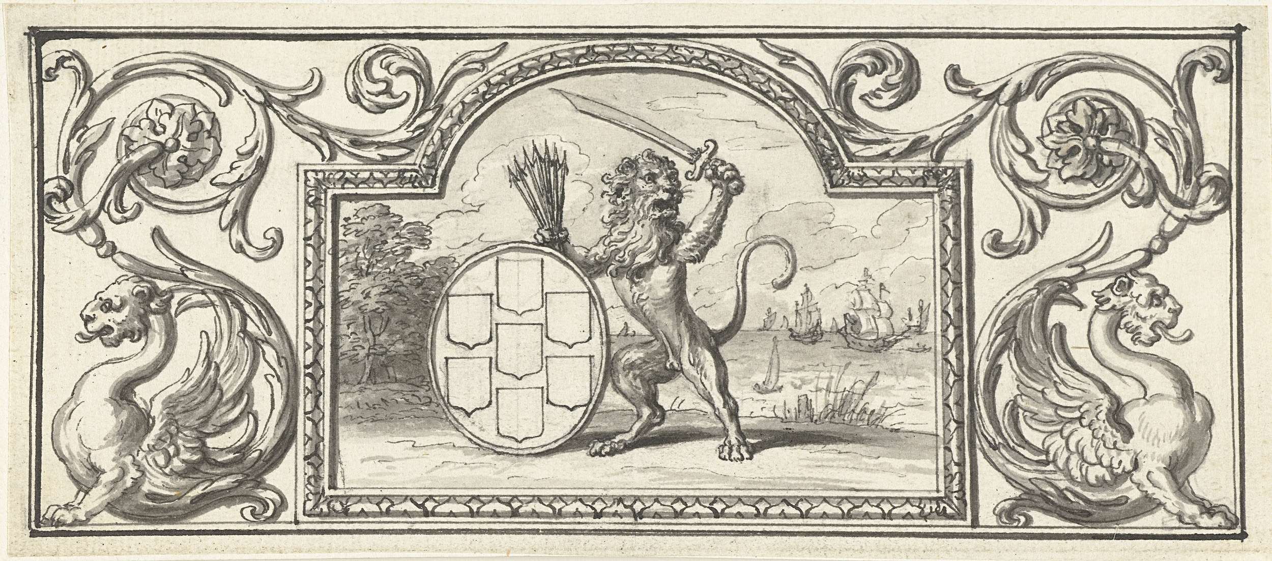 Vignet met de Nederlandse leeuw met het wapen van de...