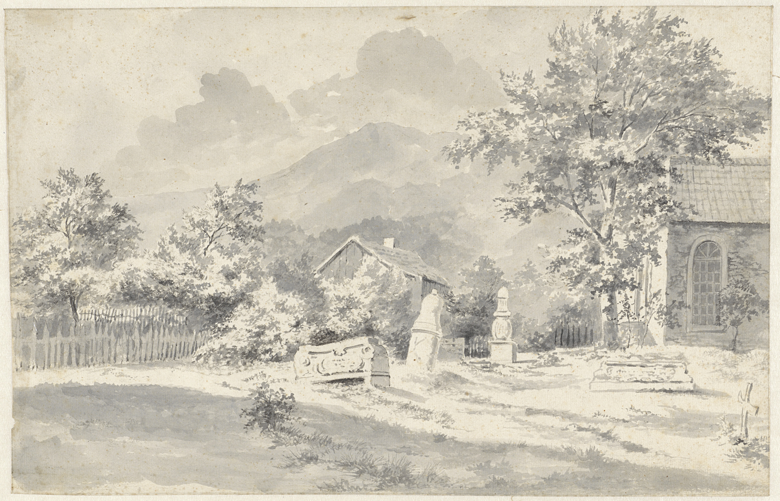 Kerkhof met verzakte stenen, te Ilsenburg