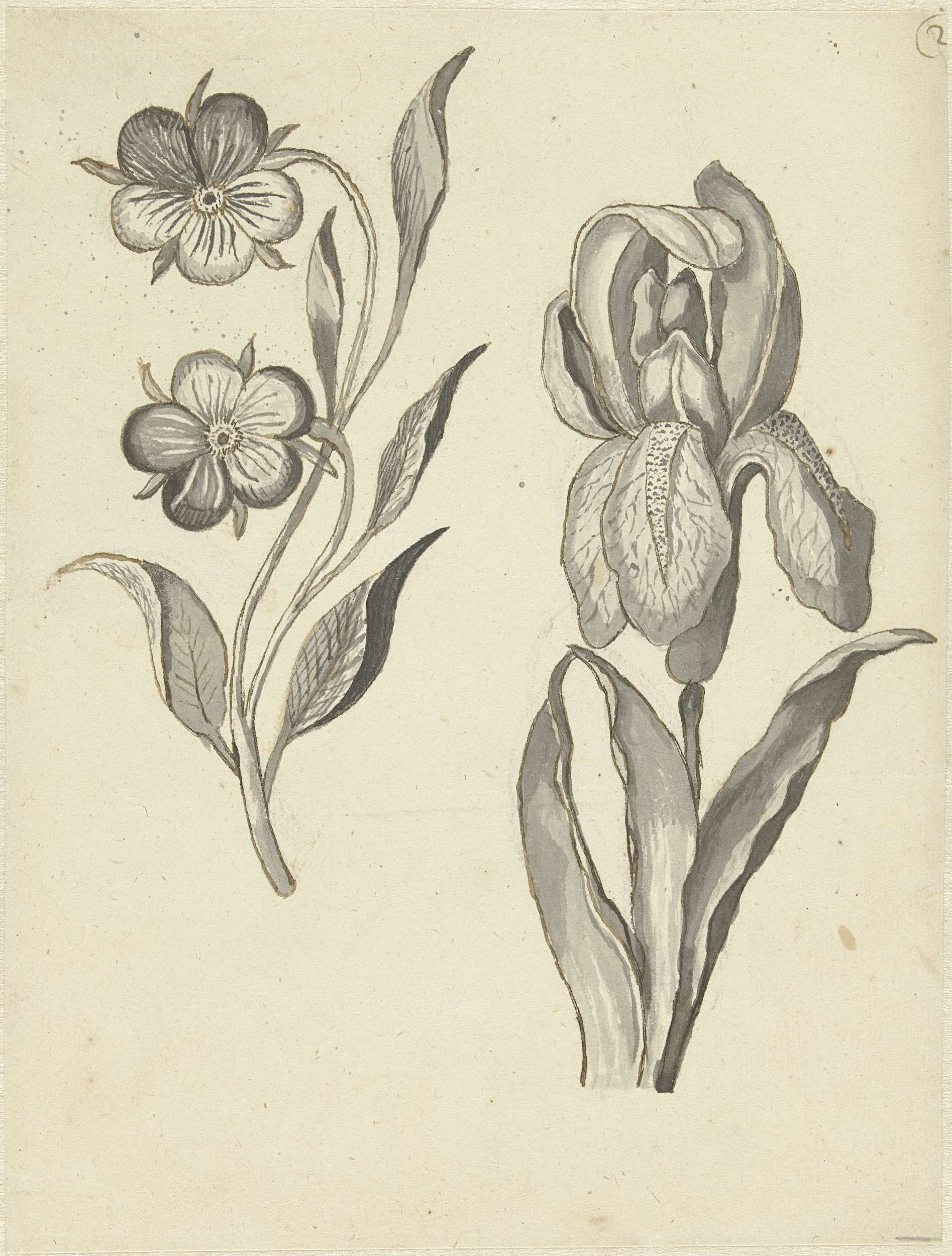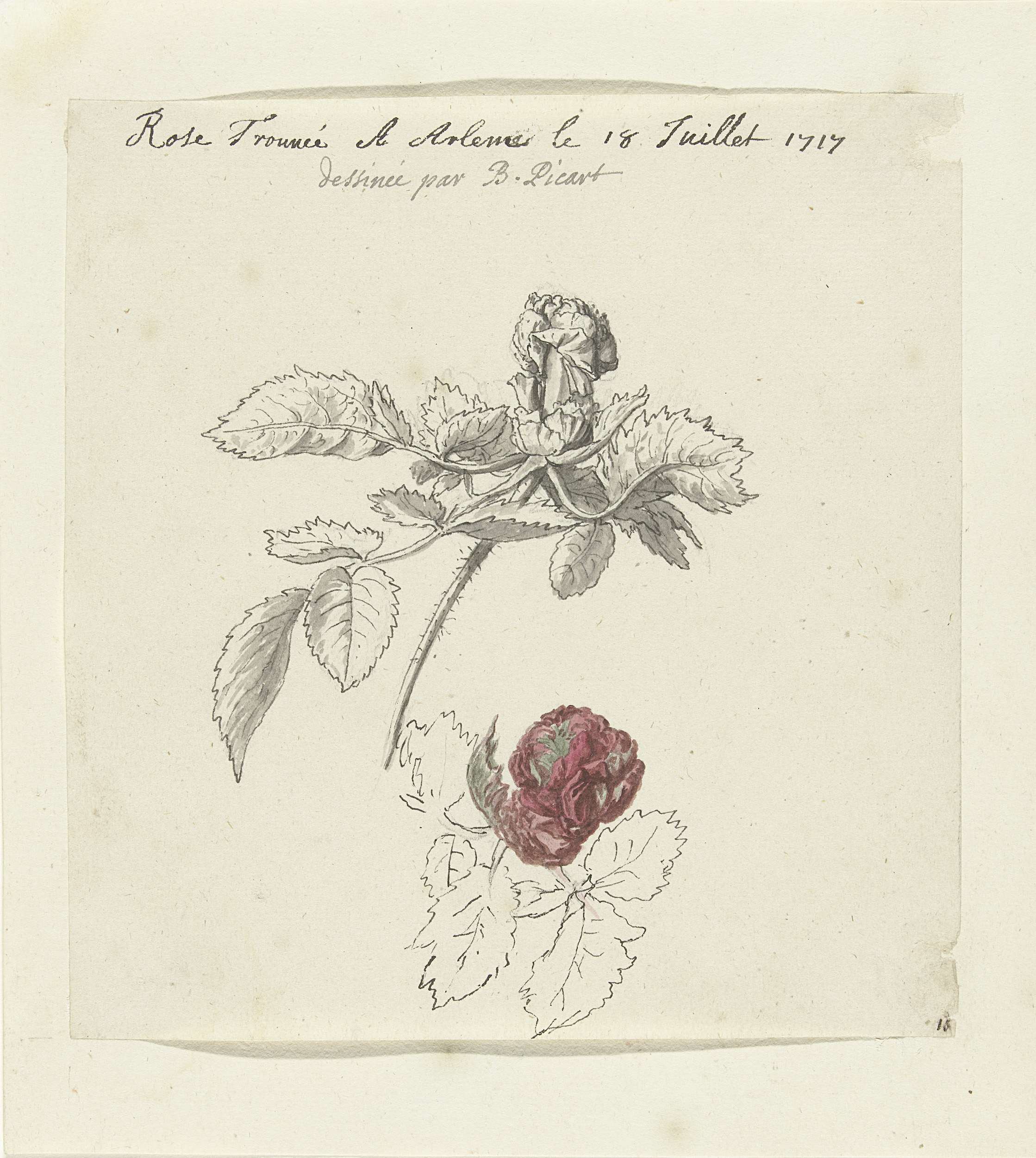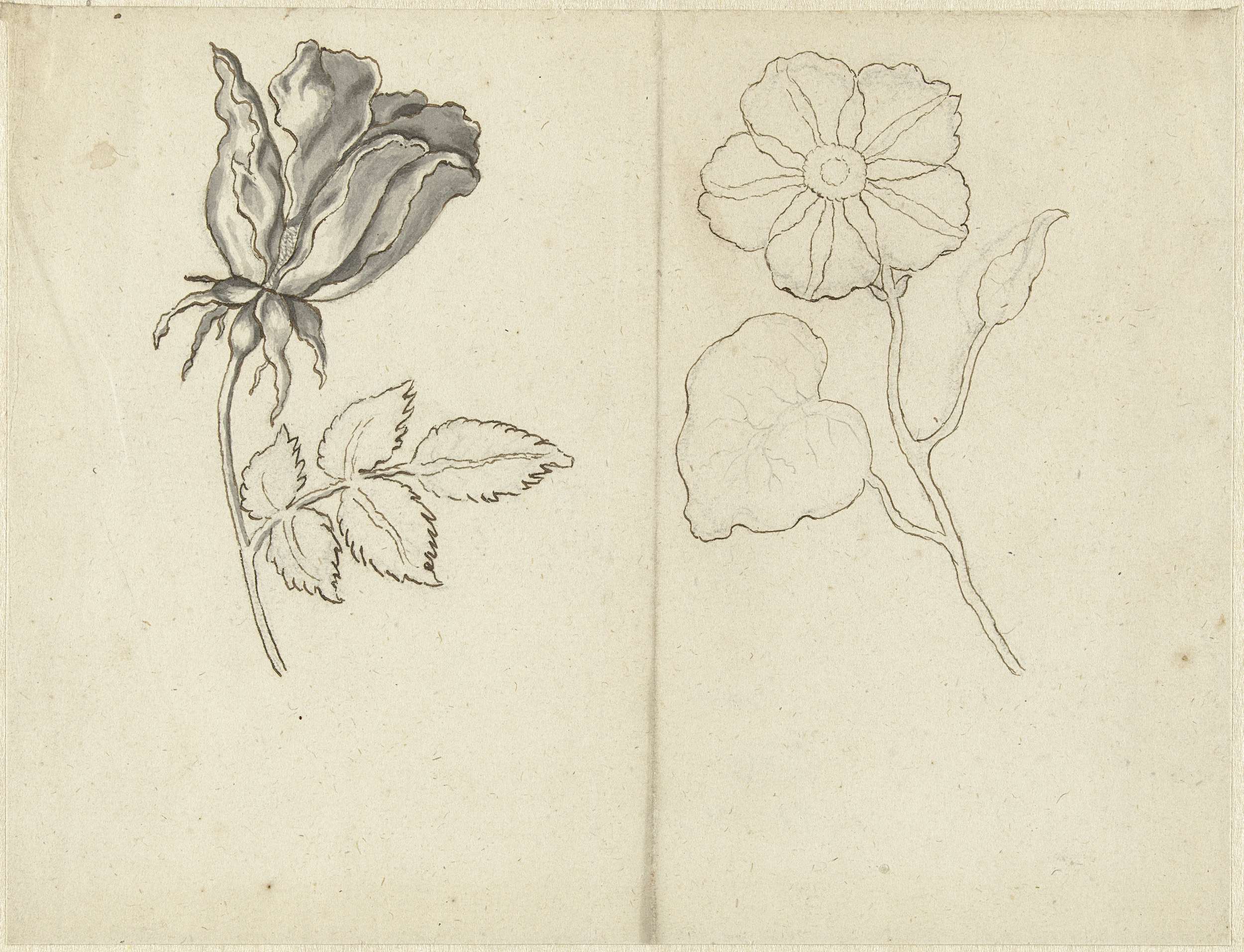 Studieblad met een roos en een ranonkel (?)