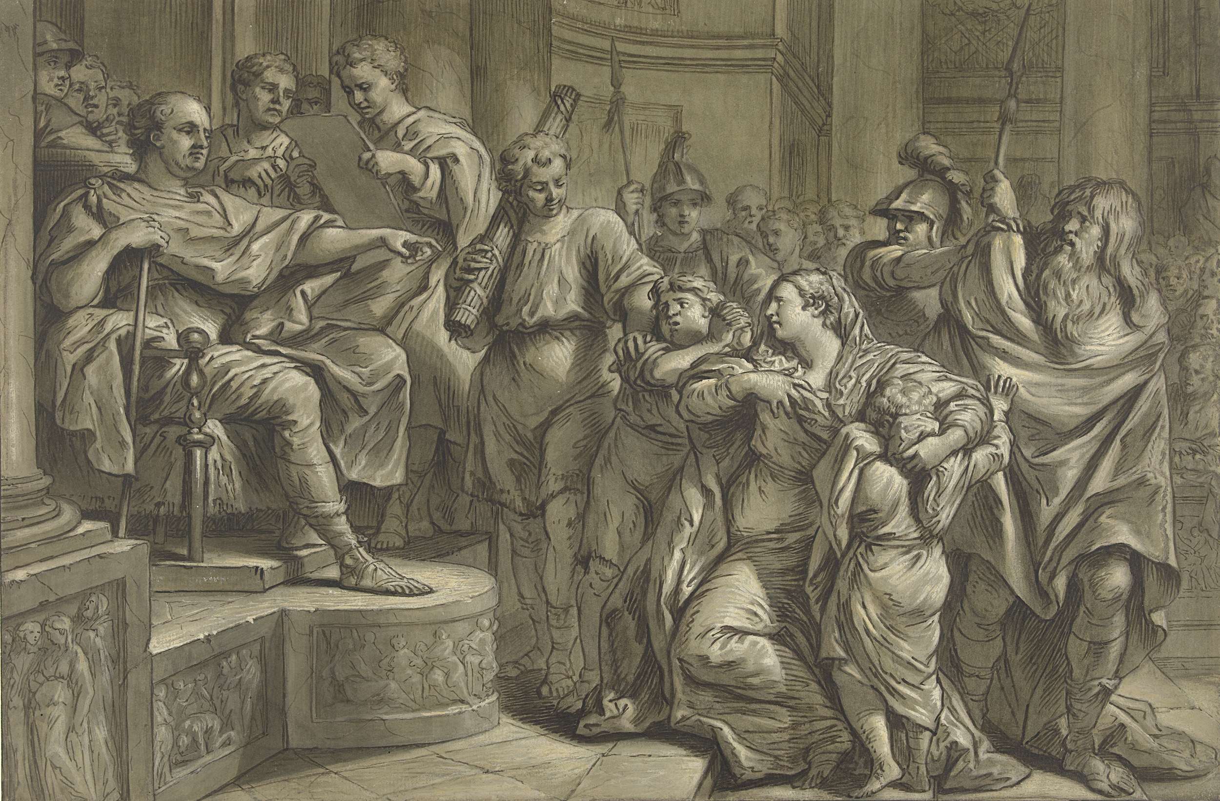 Zittende en een staande naakte jongeling