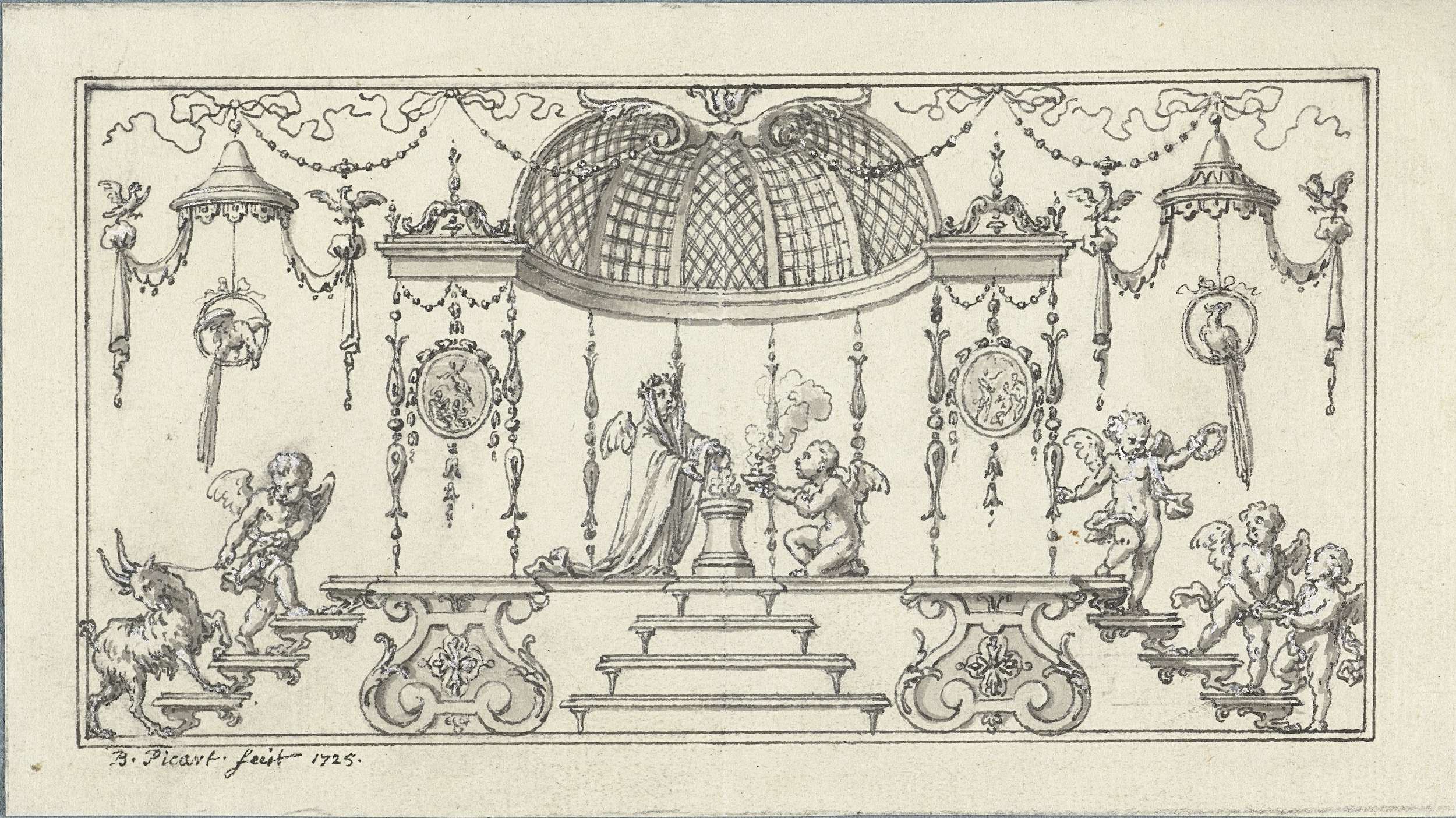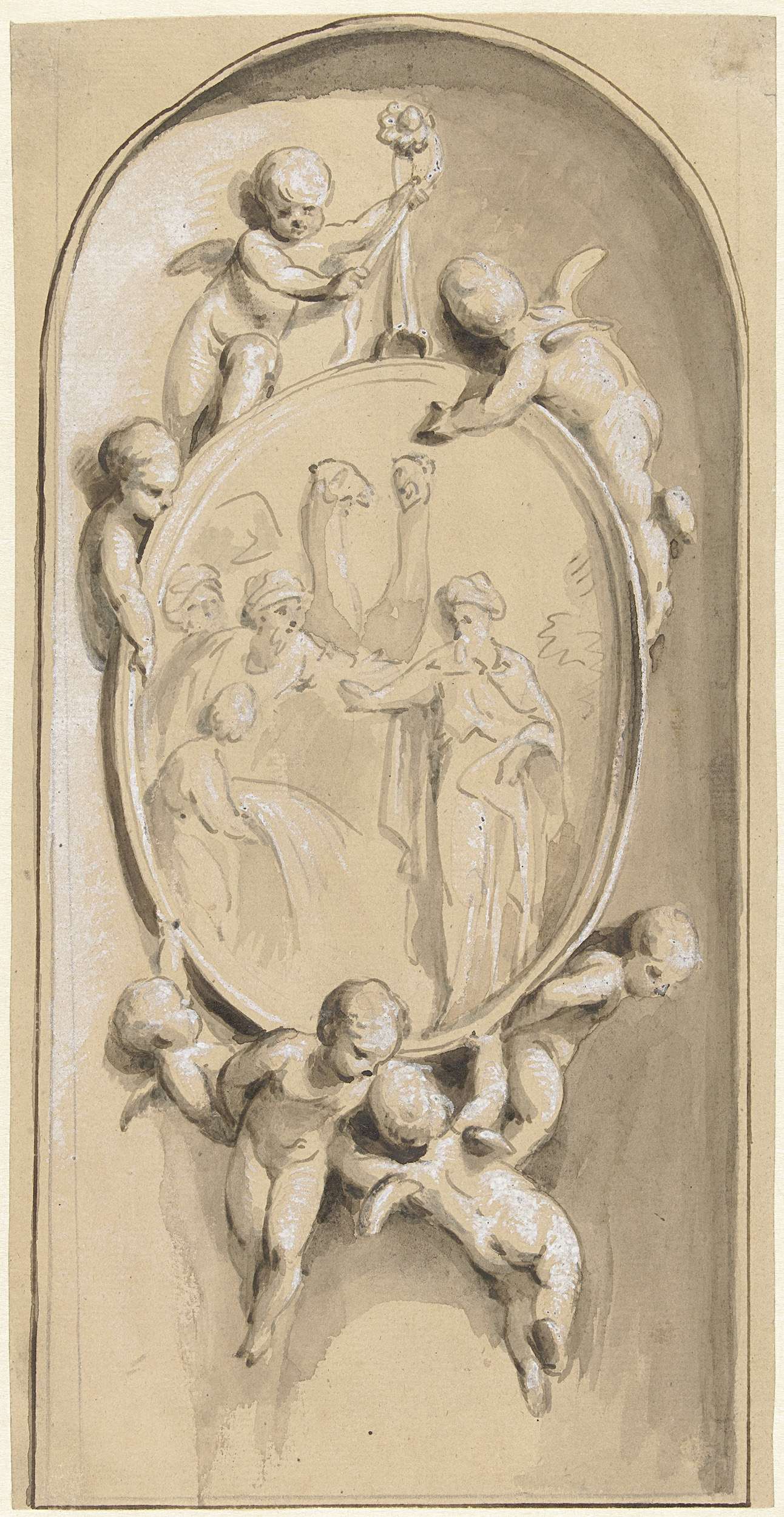 Paneelvulling met offerende putti