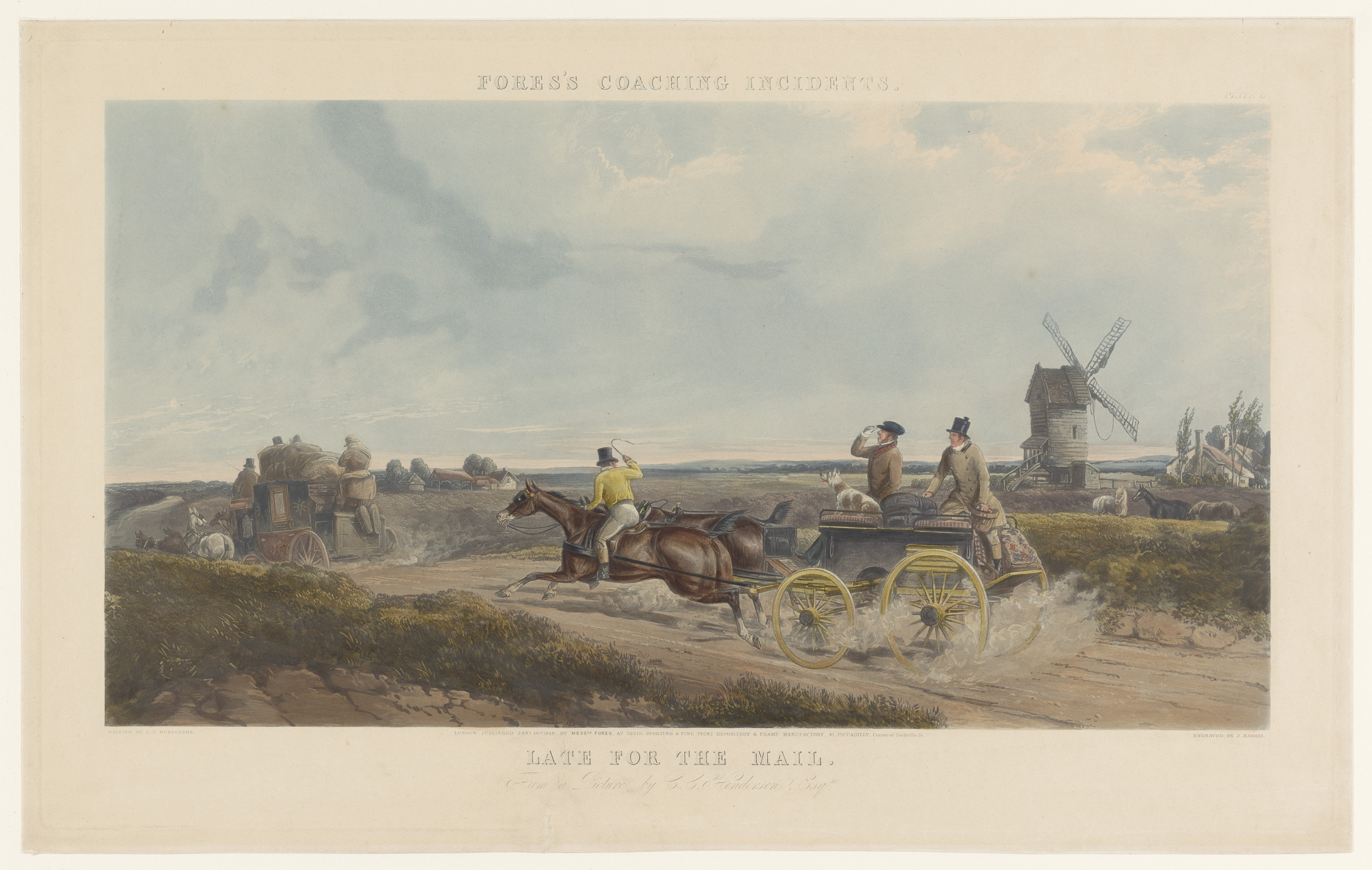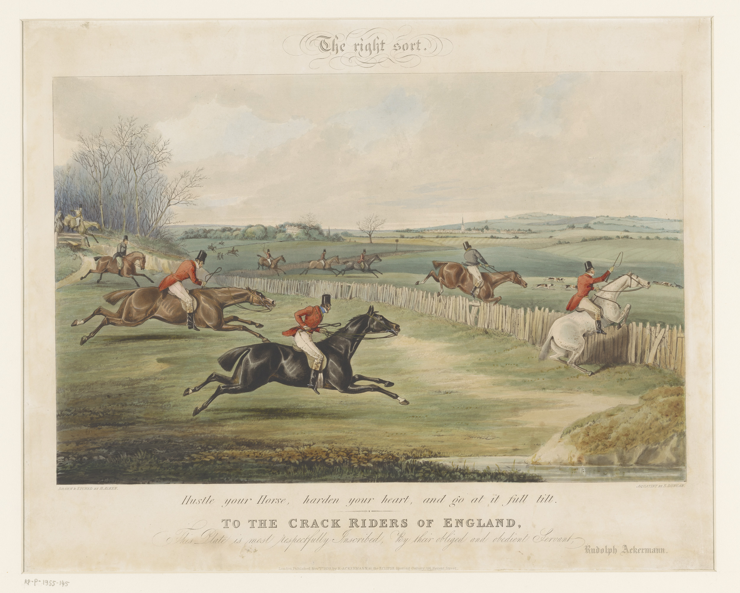 Zes ruiters in een race te Newmarket
