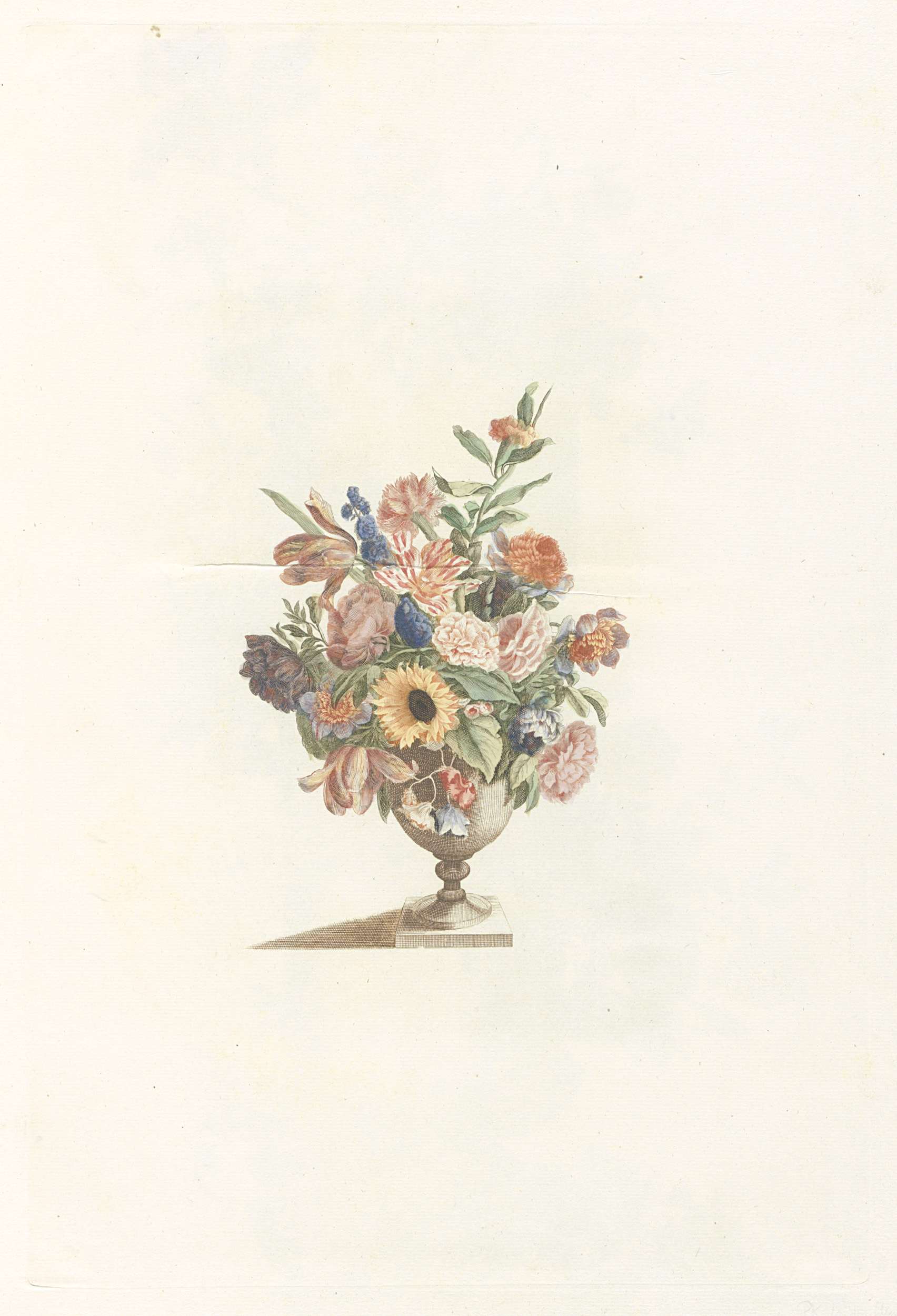 Bloemenvaas met zonnebloem en tulpen