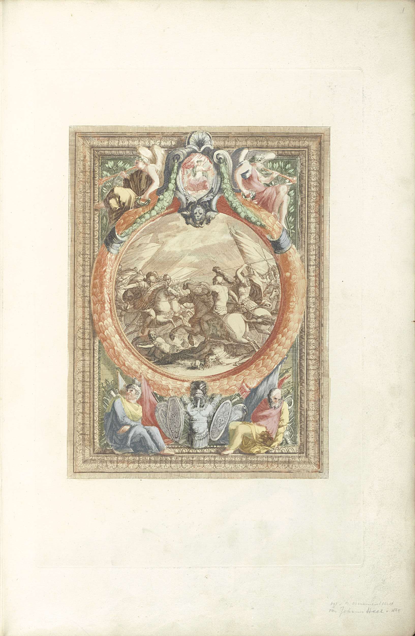 Ruitergevecht in ornamentele omlijsting