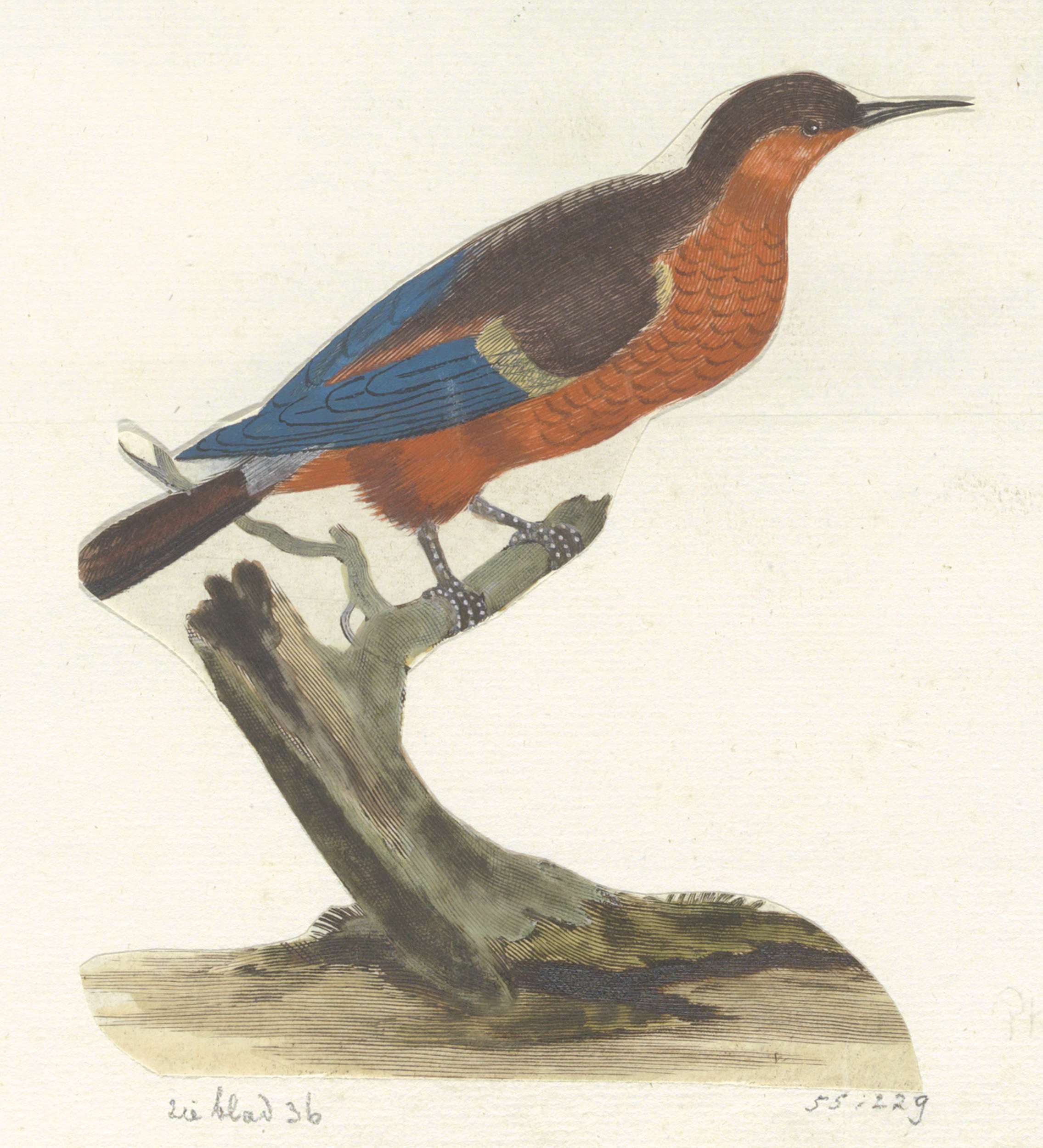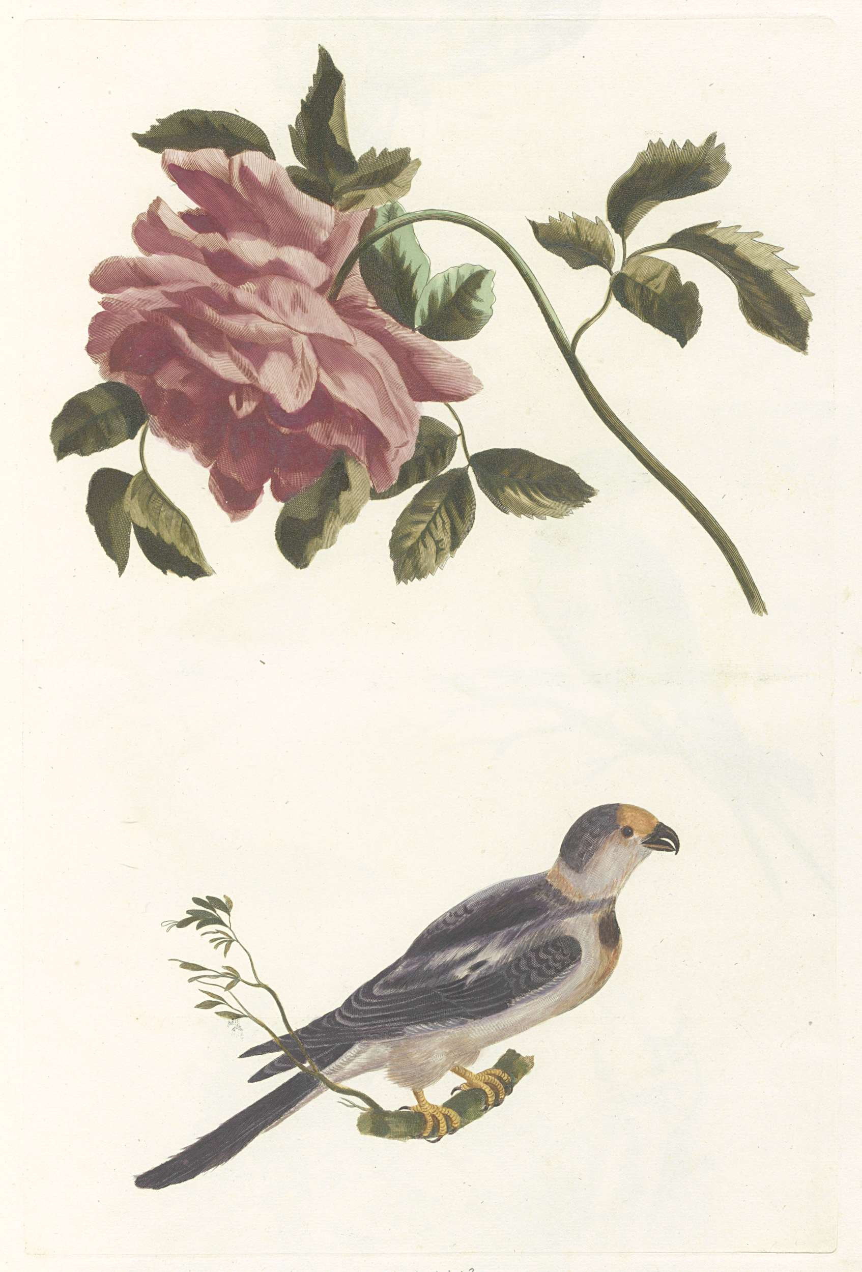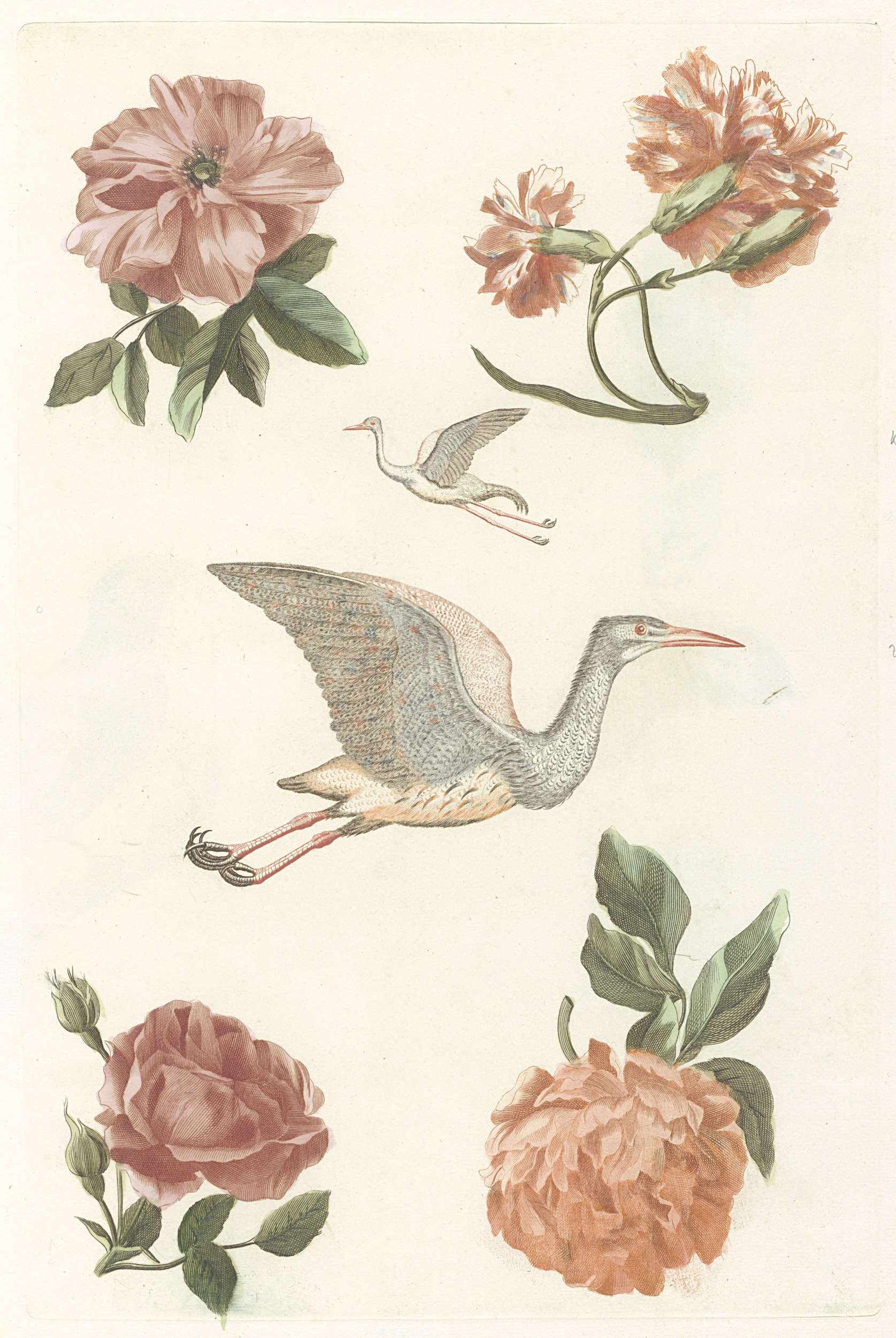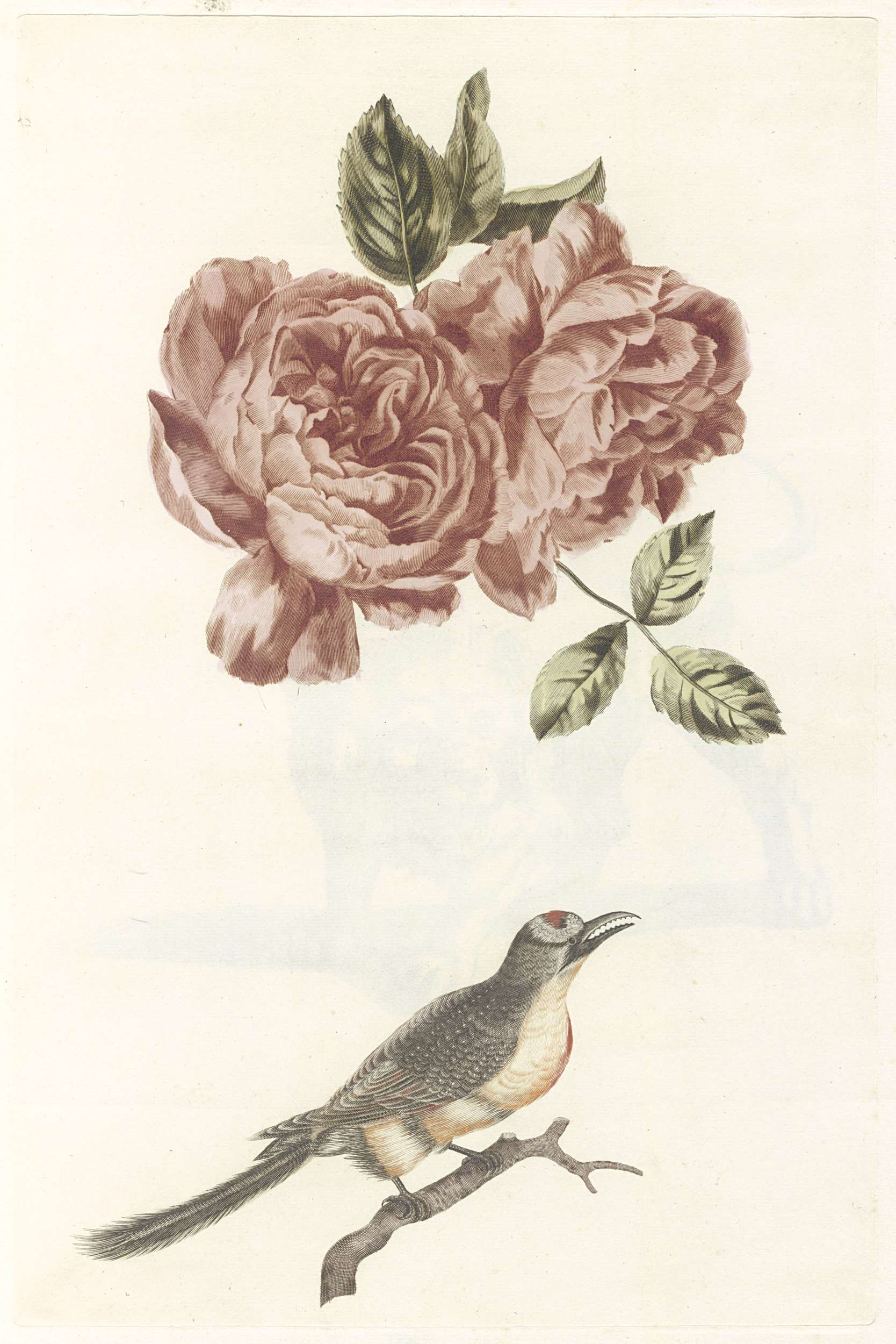 Twee rozen en een vogel met gekartelde bek