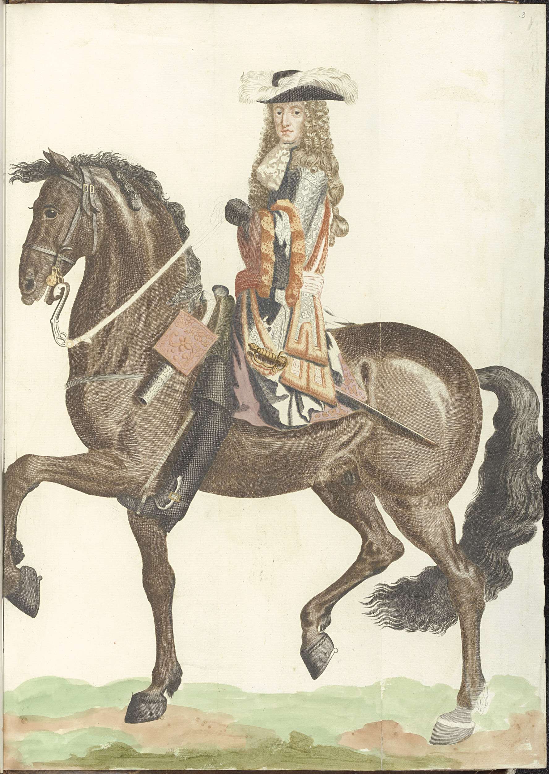Stadhouder Willem III te paard naar links