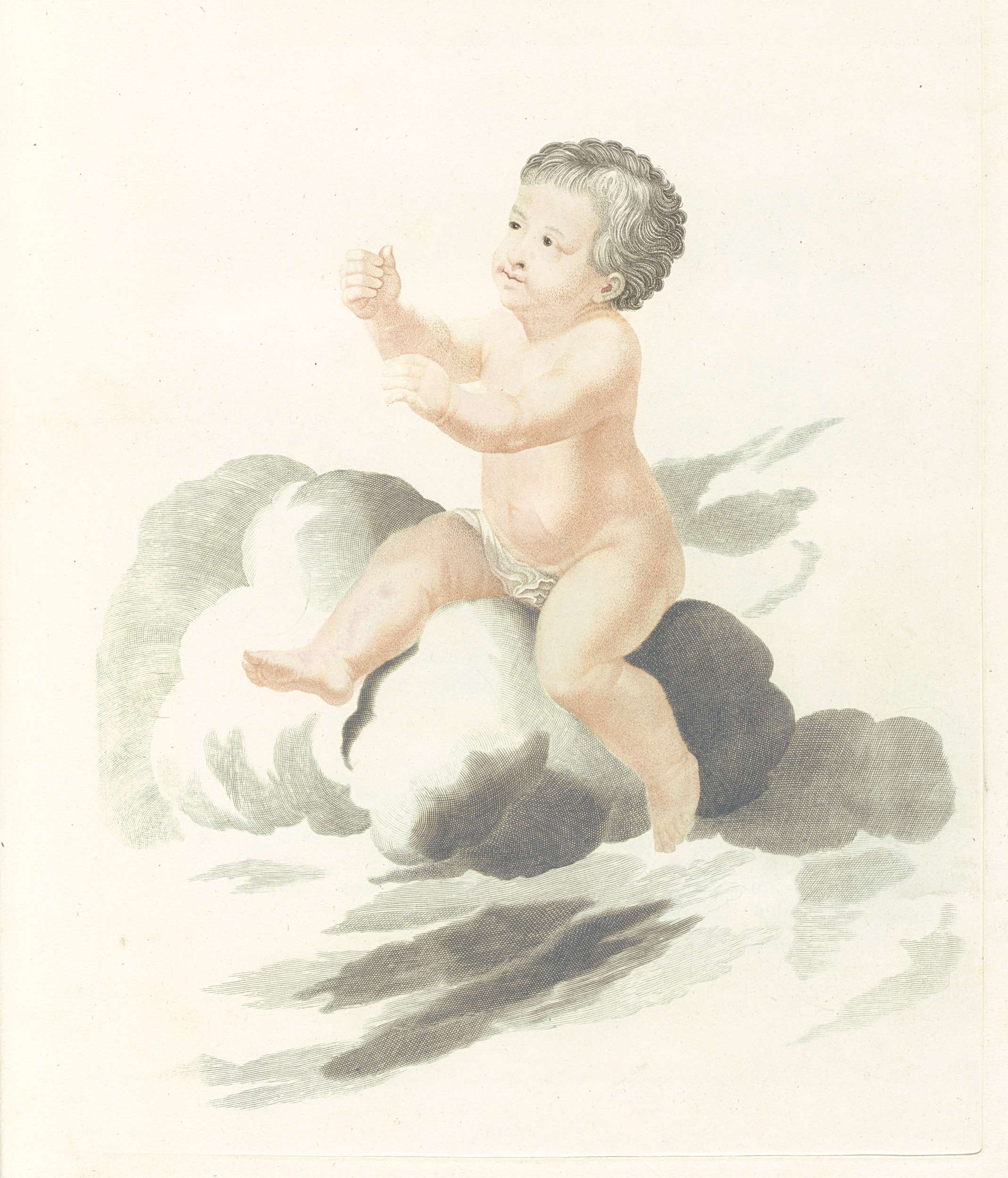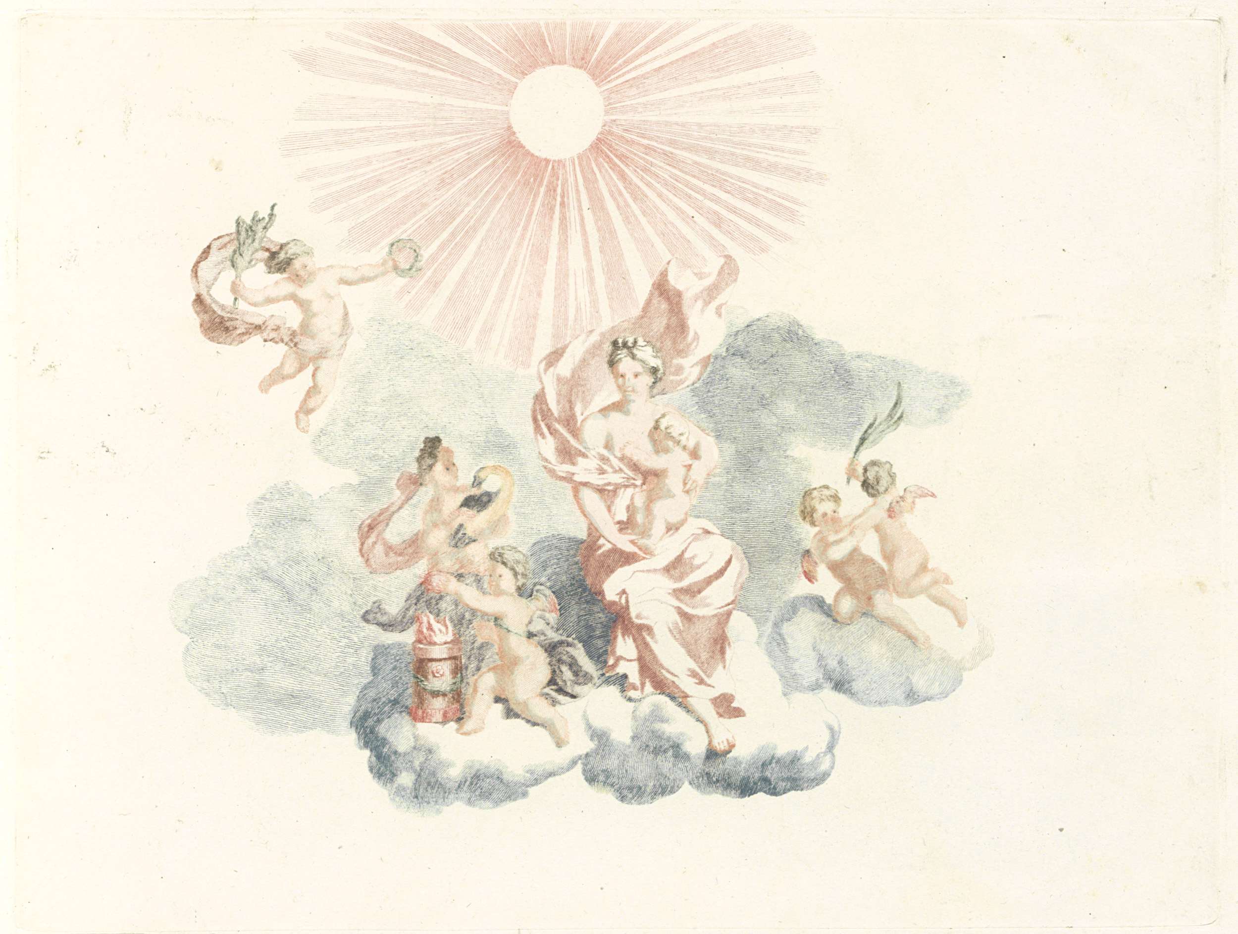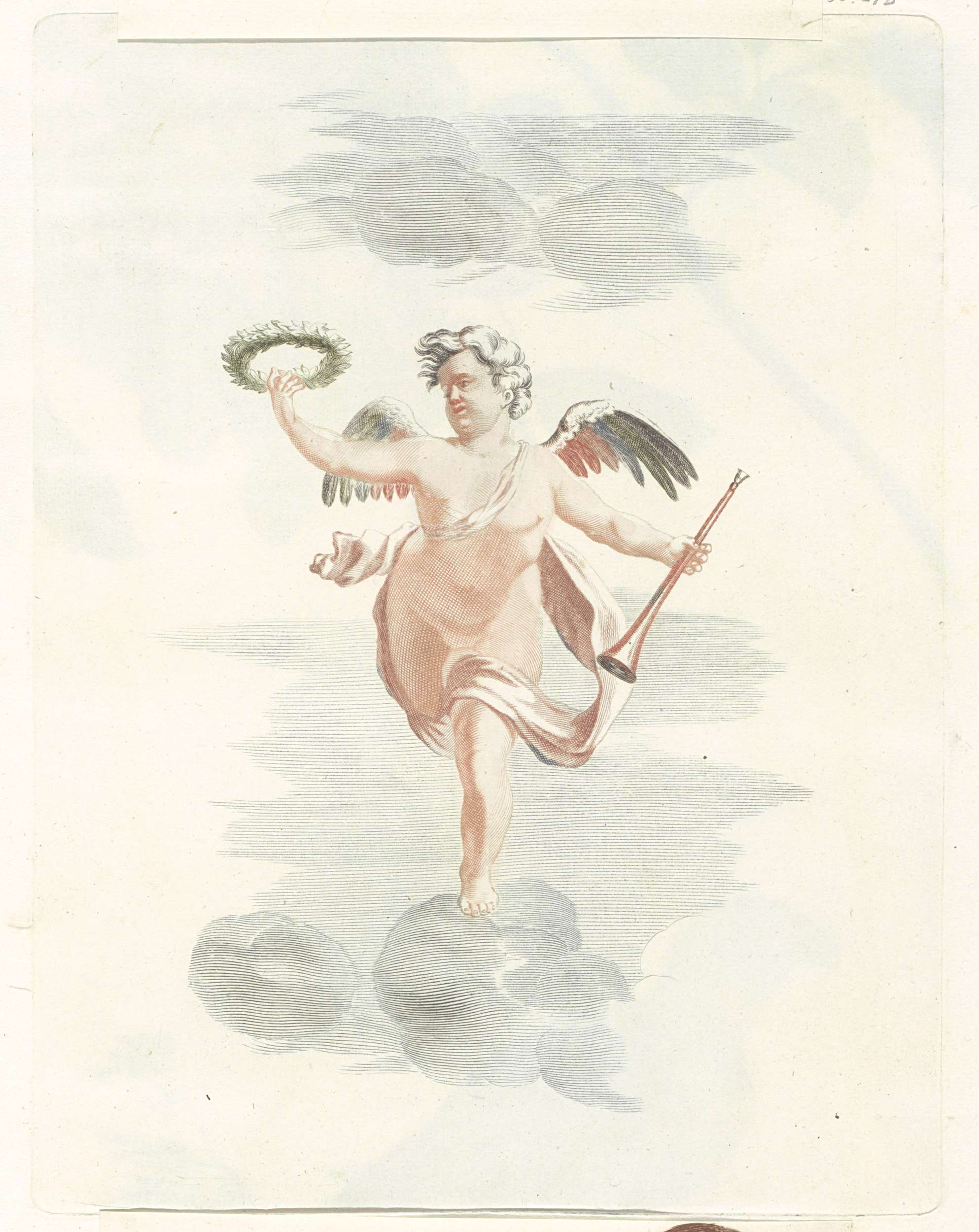 Putto met lauwerkrans en loftrompet