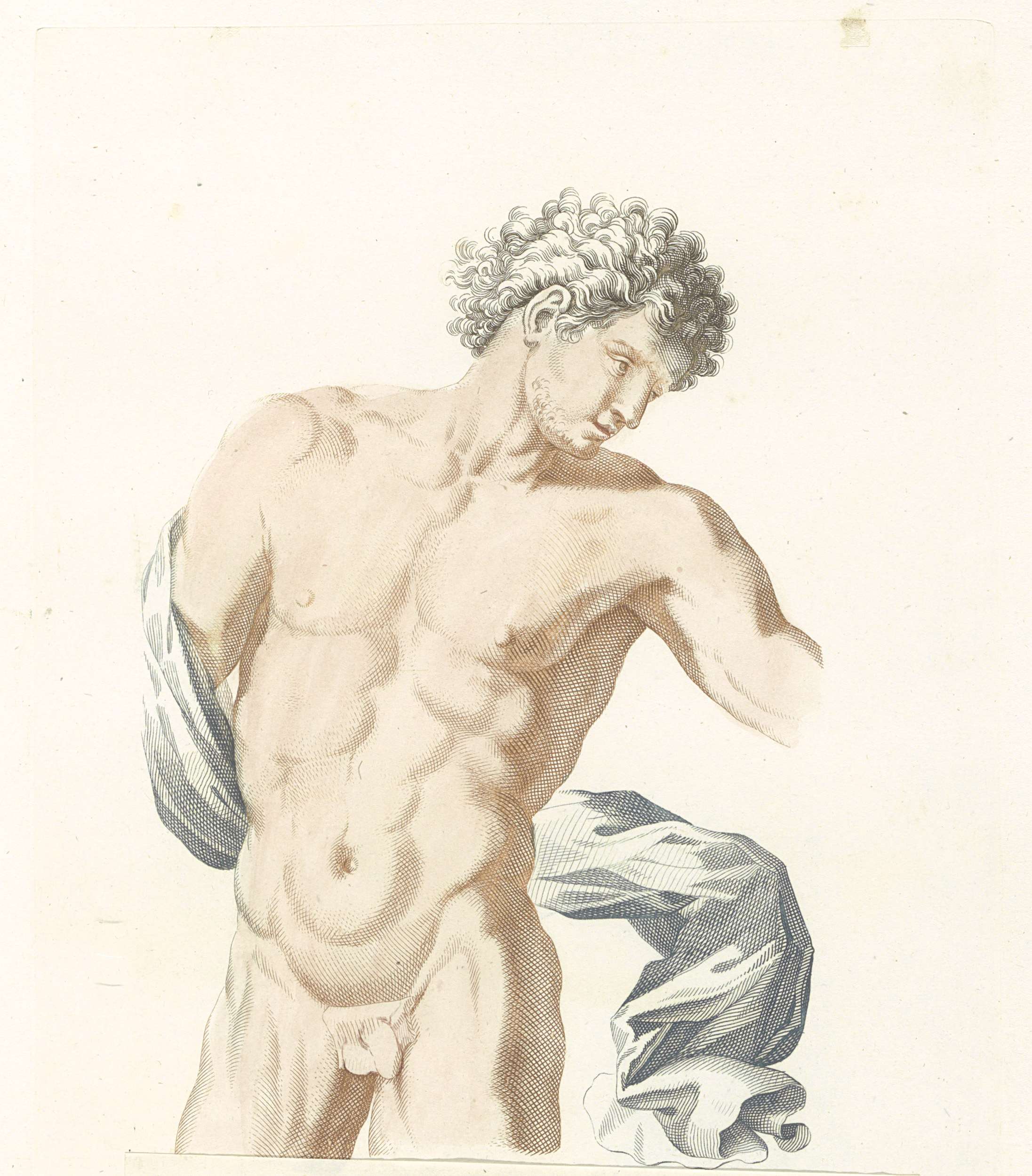 Torso van een naakte man met gewaad over een arm