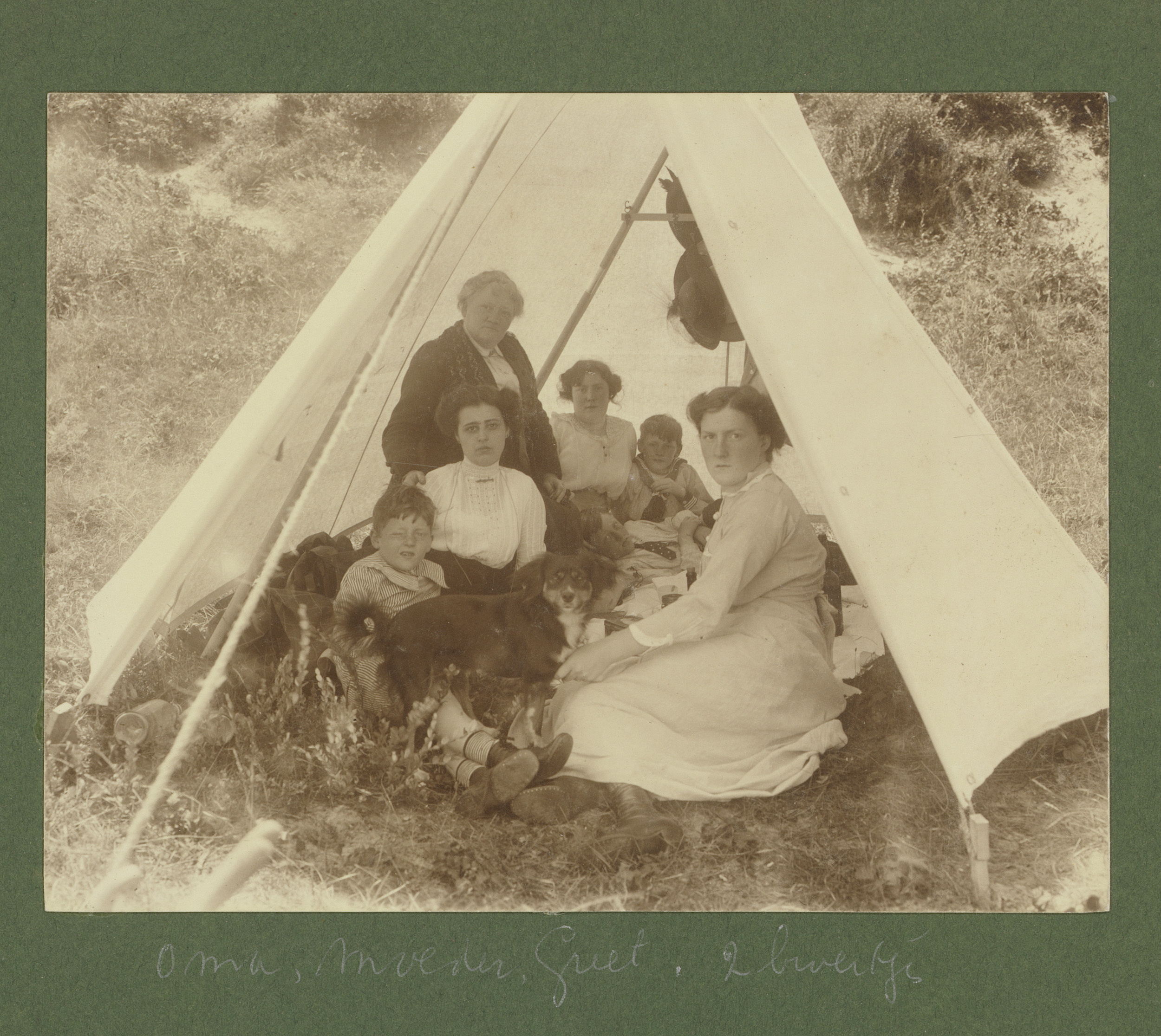 Groepsportret van zes leden van de familie Vermeulen...