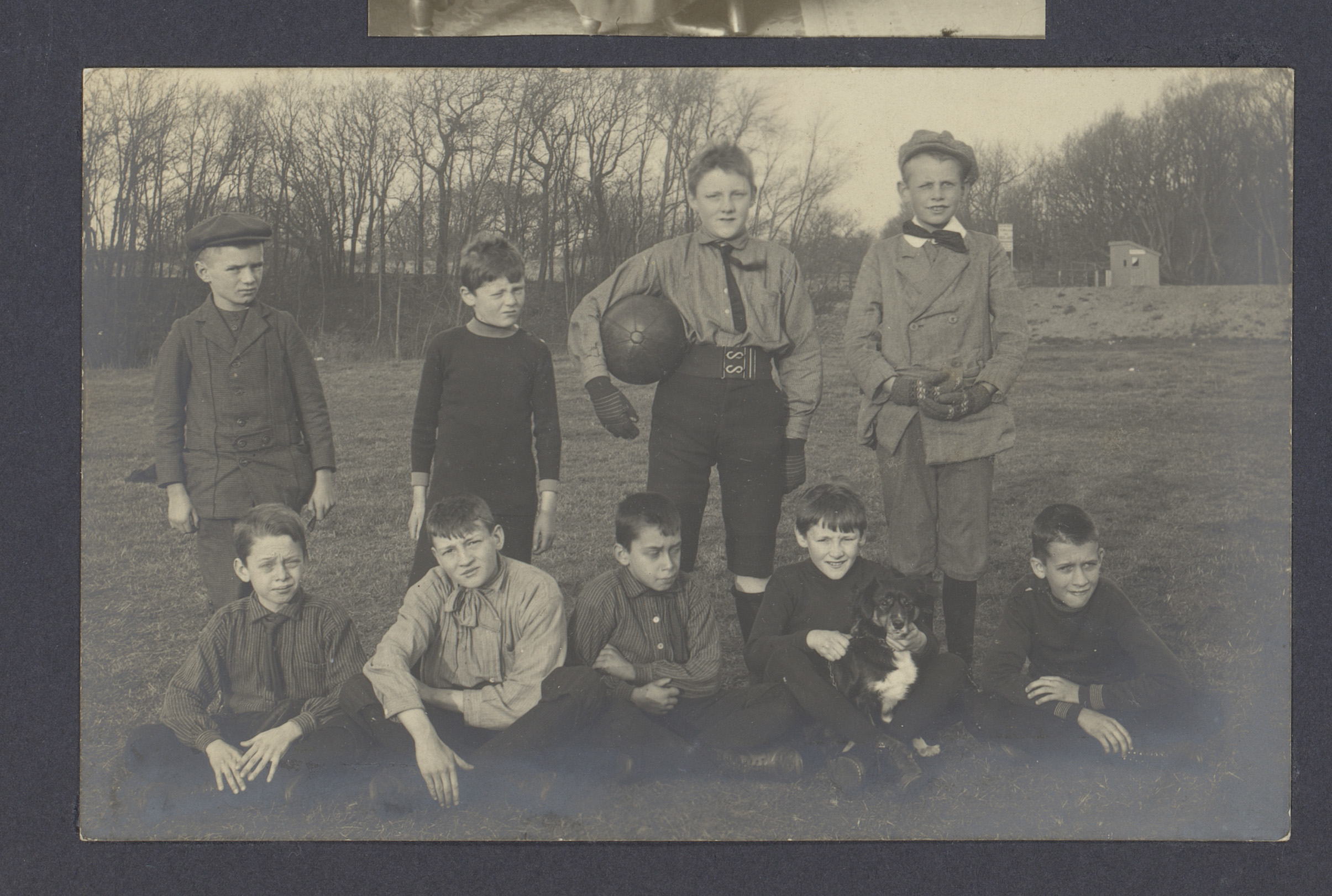 Negen jongens, waaronder Gerard Vermeulen, op een ve...