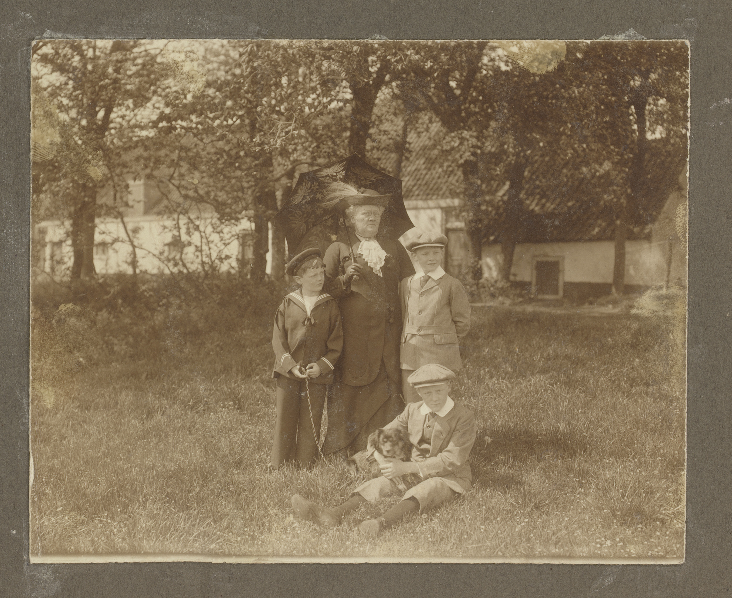 Portret van oma Vermeulen met Gerard, Gerrit en Joha...