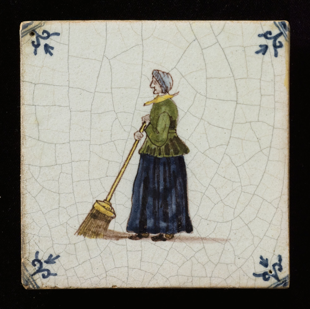 Tegel van keramiek met tinglazuur, voorstellende een...