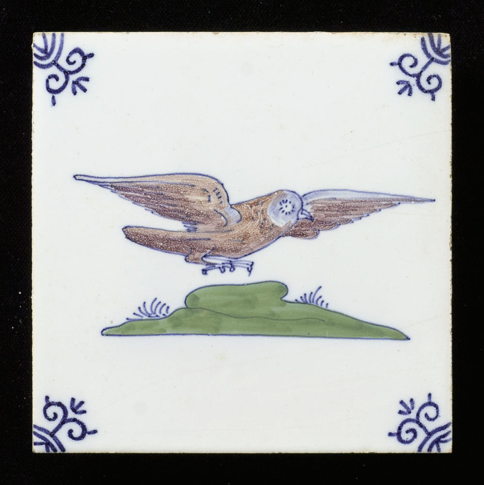 Tegel van keramiek, tinglazuur, voorstellende een fi...