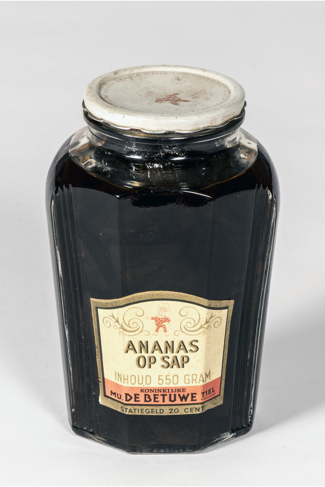 Pot van glas met metalen klikdeksel, inhoud ananas o...