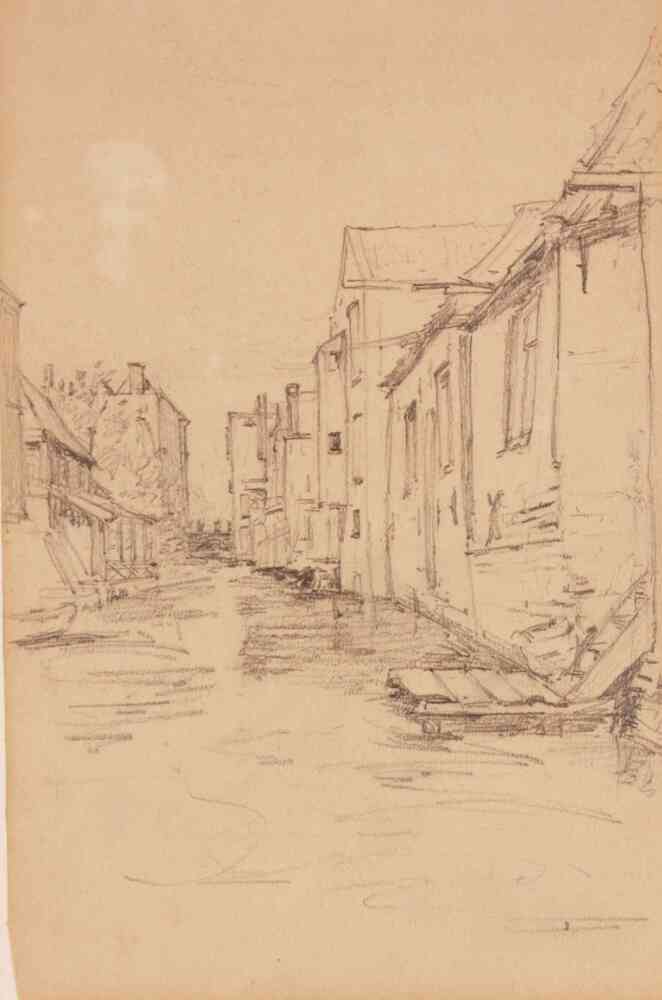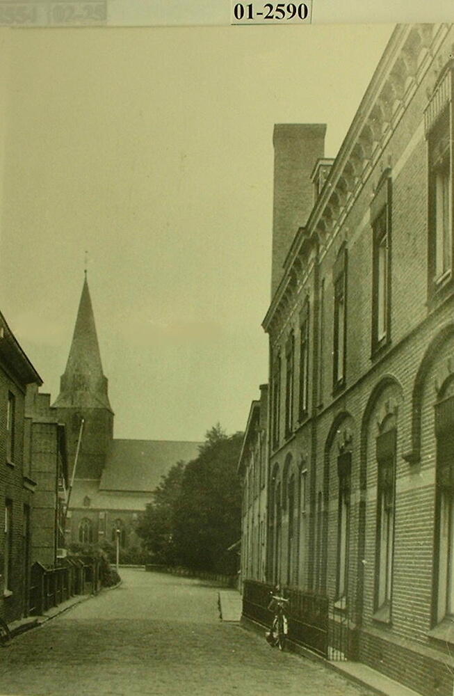 Huizen aan de Stikke Hezelstraat met Sint Stevenstoren