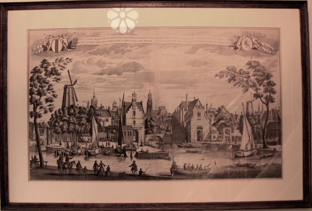 Gesigt van de seer oude en beroemde stad Delft gelee...