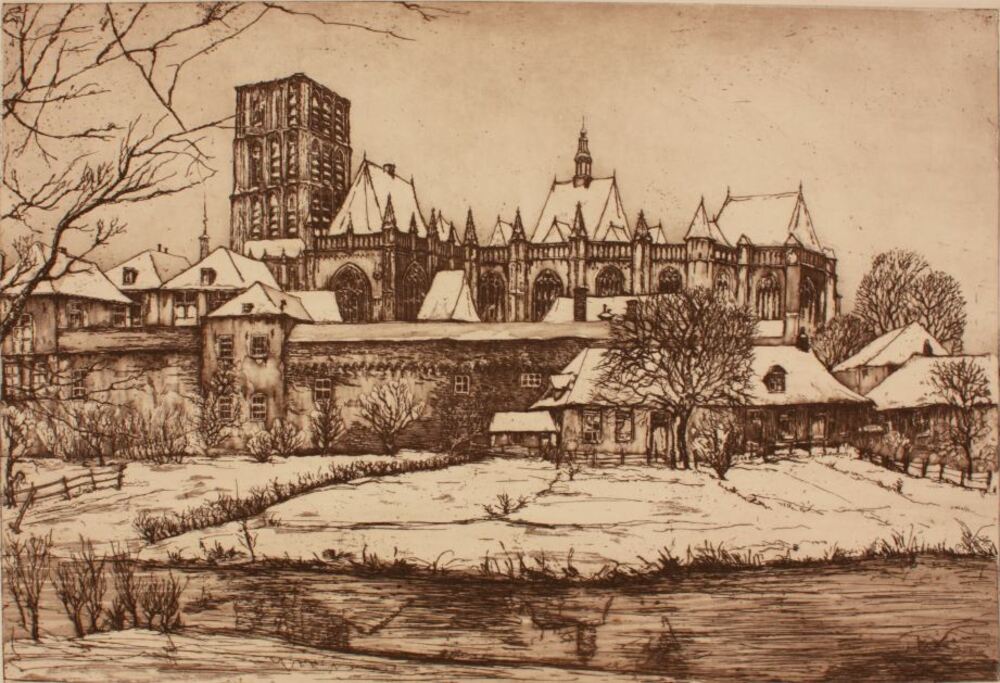 Gezicht op Sint Walburgiskerk en stadsmuur