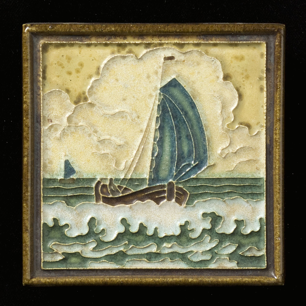 tegel van keramiek, gesjabloneerd, voorstellende: ha...